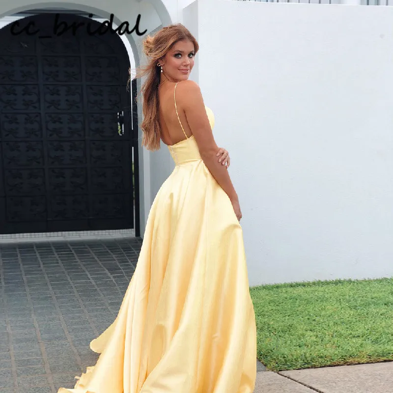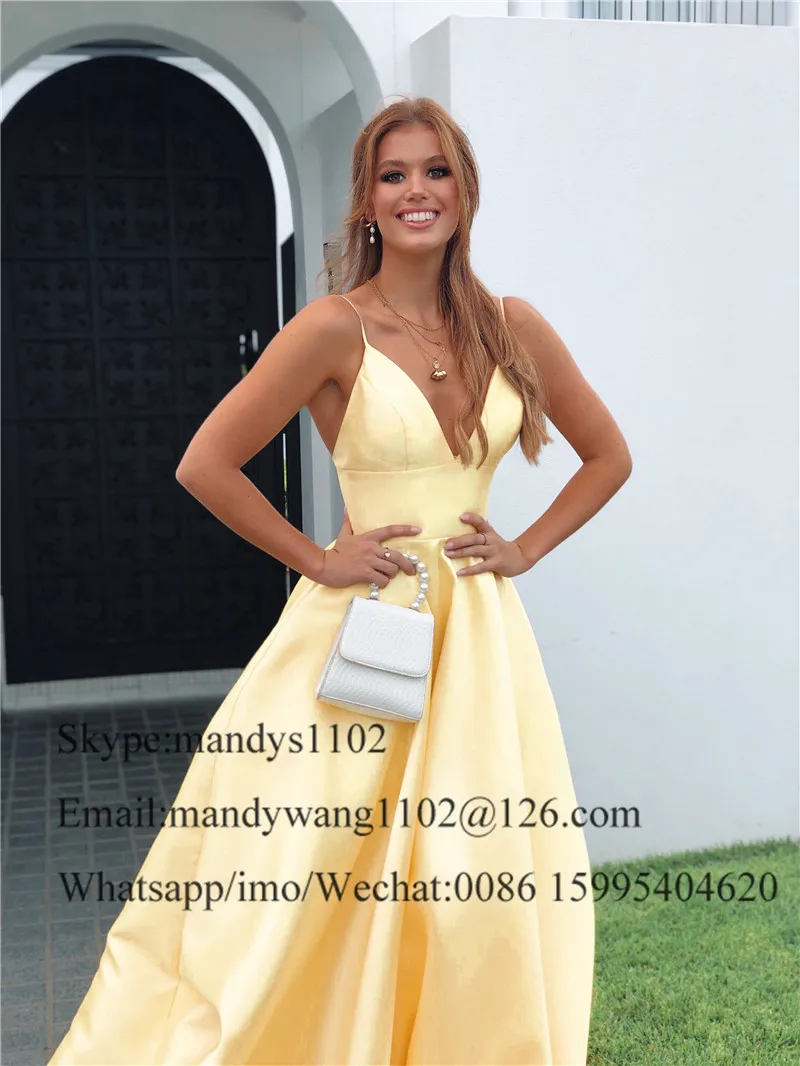 Великолепный светильник, желтое платье для выпускного вечера 2020, сексуальное женское платье с v-образным вырезом, длинные элегантные вечерние платья с карманом, бесплатная доставка