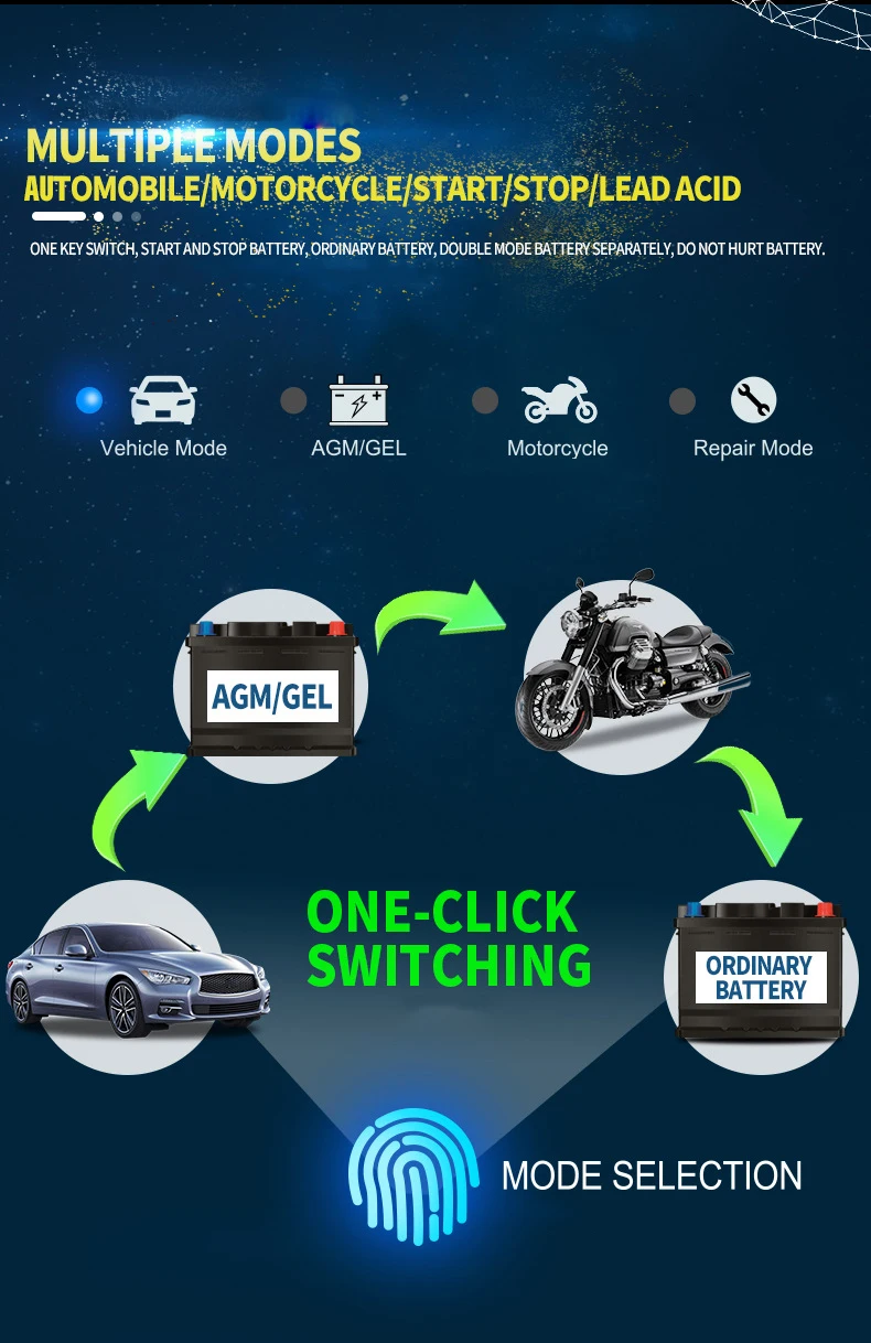 Function 02Smart Fast Automatic Car Motorcycle Lead-Acid AGM GEL Battery Charger