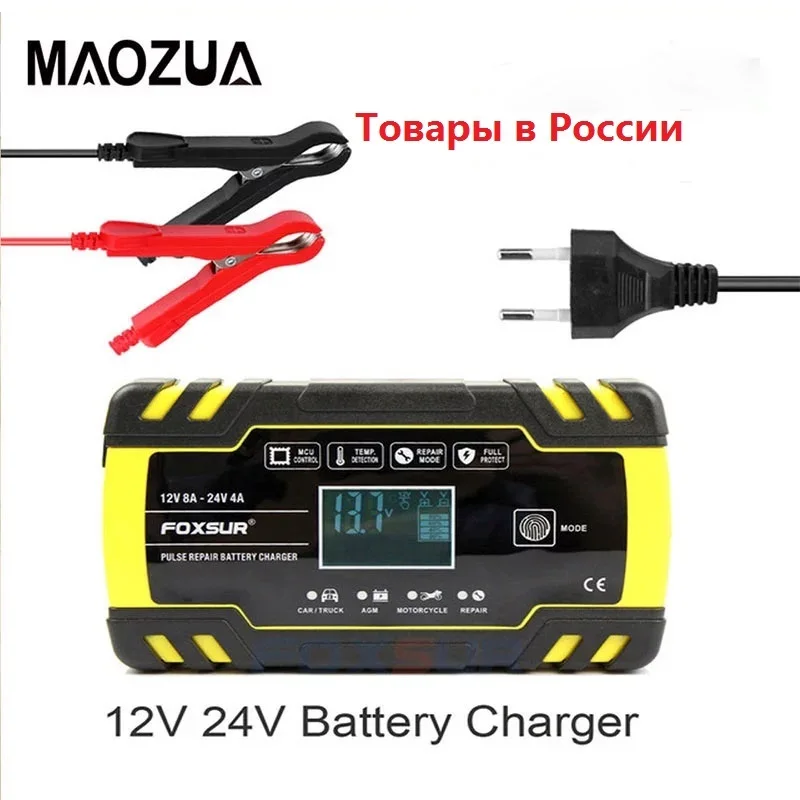 Зарядное устройство для аккумуляторов, 12-24 В, 8 А, полностью автоматическое, с цифровым ЖК-дисплеем