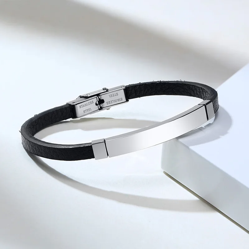 Тонкий мужской кожаный браслет на заказ, идентификационная бирка из нержавеющей стали в классическом стиле, размер сделай сам