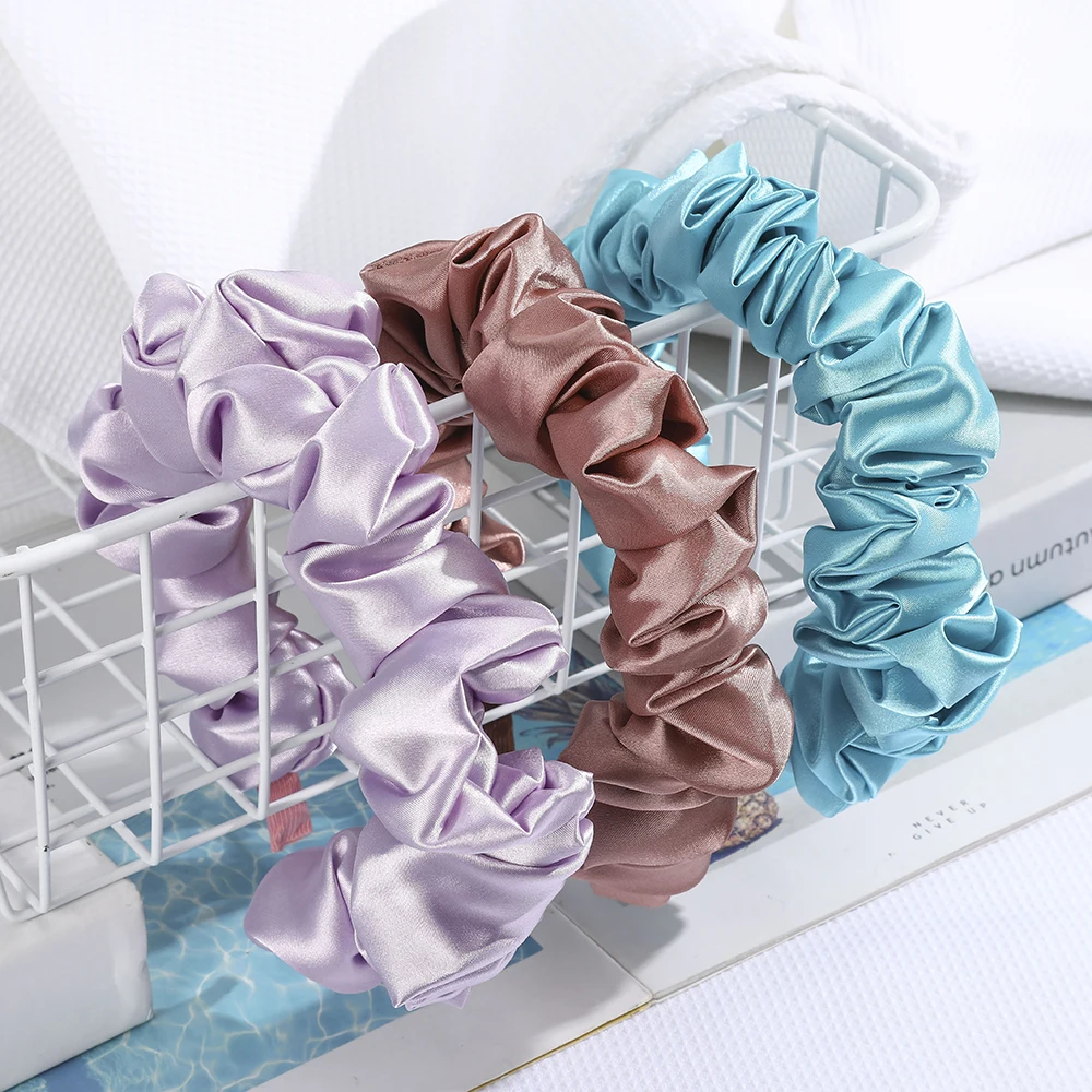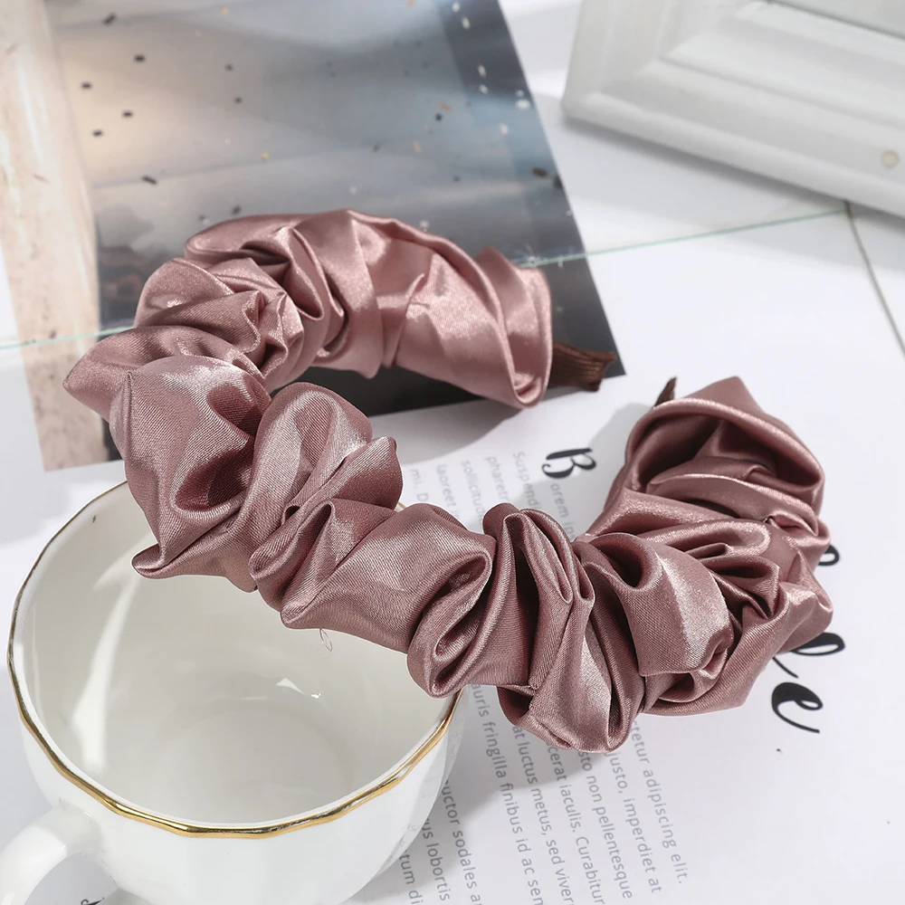 Обруч для волос женский из искусственного шелка с рюшами, повязка на голову "Бандана"