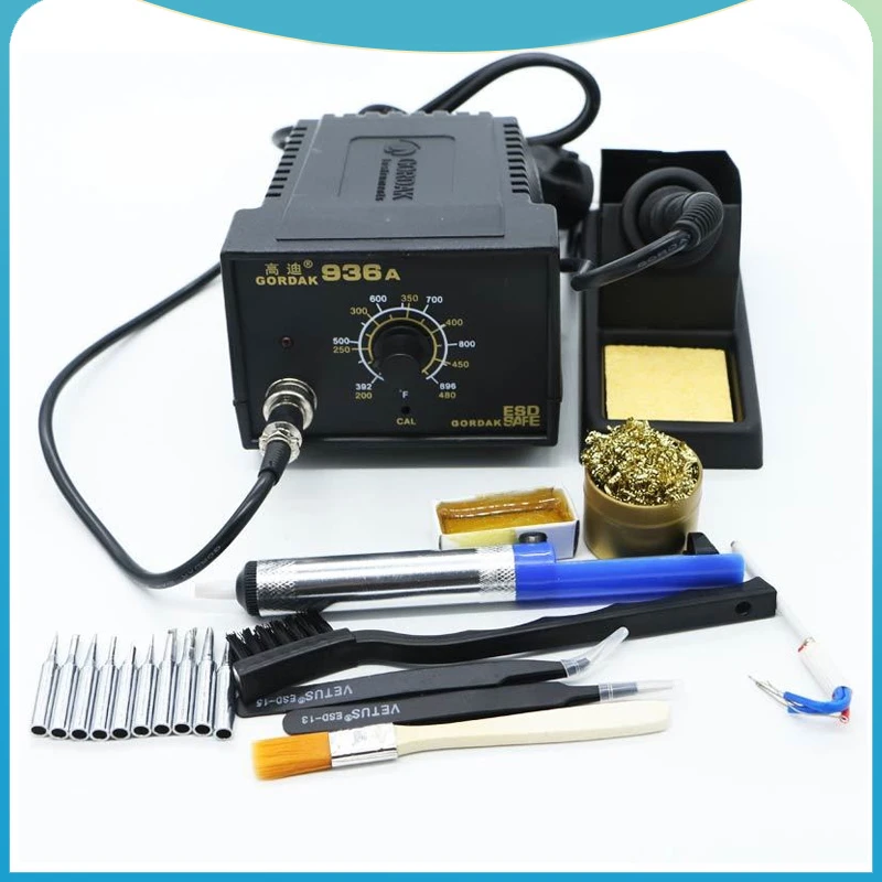 Gordak 936A особенно подходит для монтажа и повторной работы SMD компонентов вручную, ремонта, пайки, обычной и непосредственно вставленной электроники и пайки в других специальных условиях.