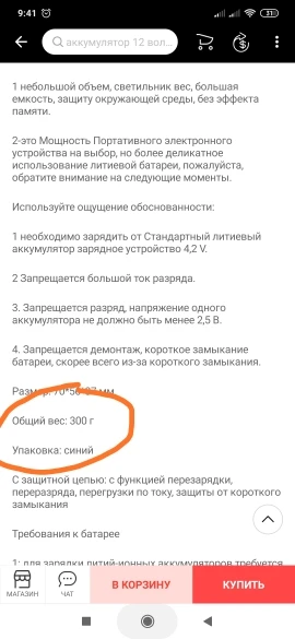 3. Запрещена разрядка, напряжение одной батареи не должно быть ниже 2,5 В.
