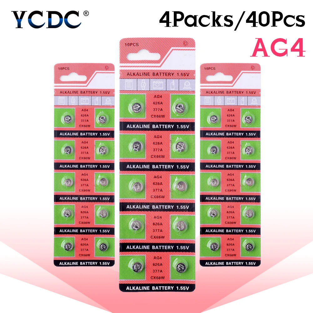 Щелочные кнопочные элементы YCDC 40 шт.лот Pilha Ag4, батарейки 1,55 в для часов 377 377A AG4 D377 GP377 L626 LR626 SR626 SR626SW