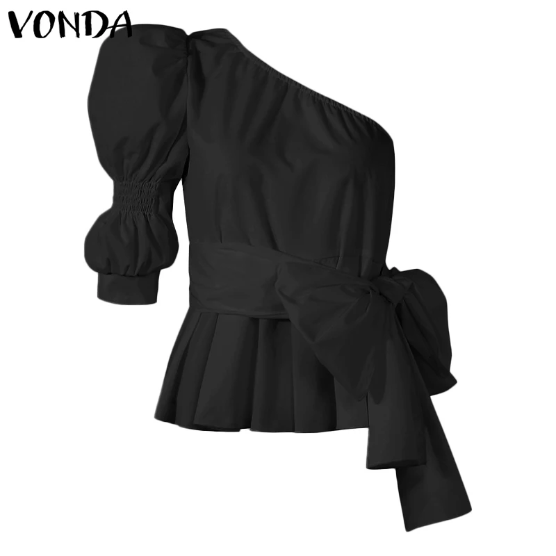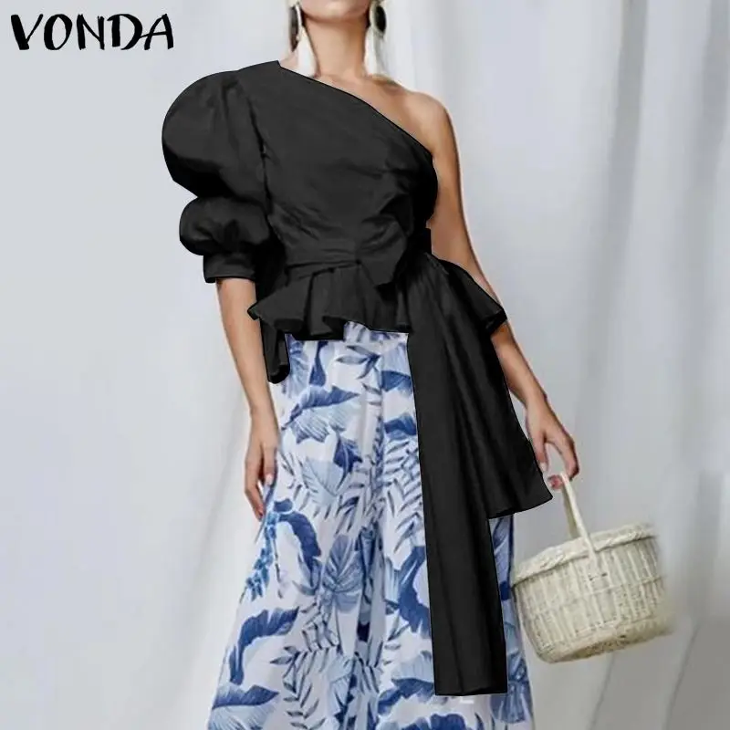 Летние блузки VONDA 2022, Женские однотонные Асимметричные рубашки ...