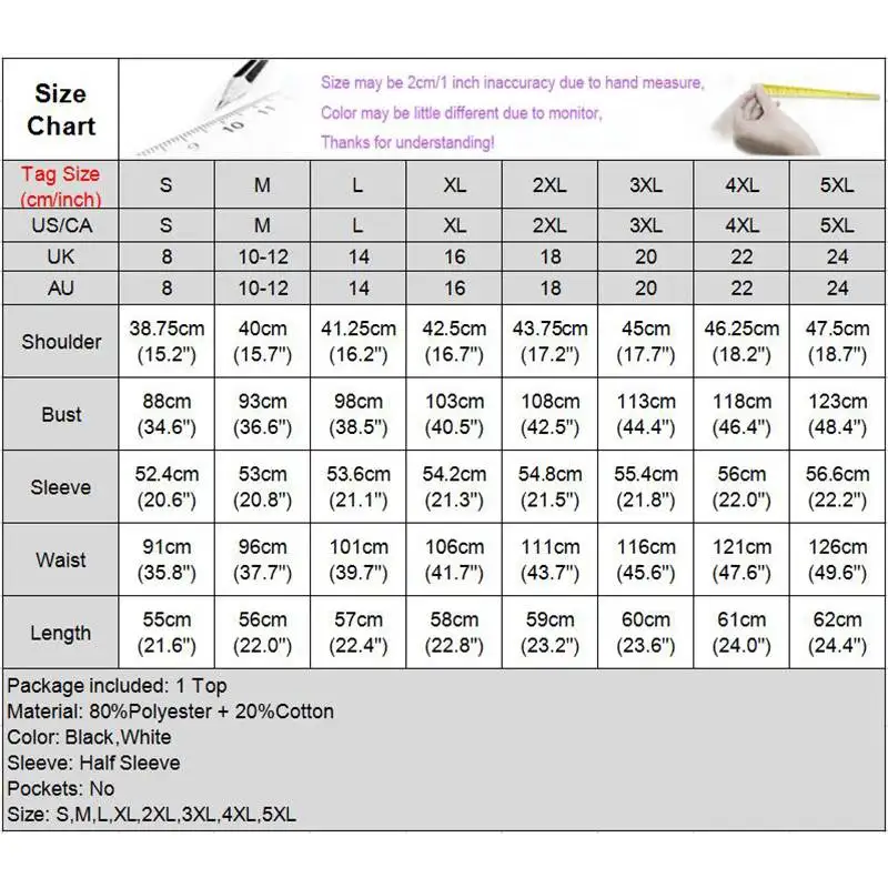 Посылка входит: 1 ТопМатериал: 80% полиэстер + 20% хлопокЦвет: черный, белыйРукав: полурукавКарманы: нетРазмер: S,M,L,XL,2XL ,,,Узор: СплошнойОсобенности: пуховка PleeveСтиль: ОтдыхСезон: летоПовод вечерние, праздник, уличная одежда