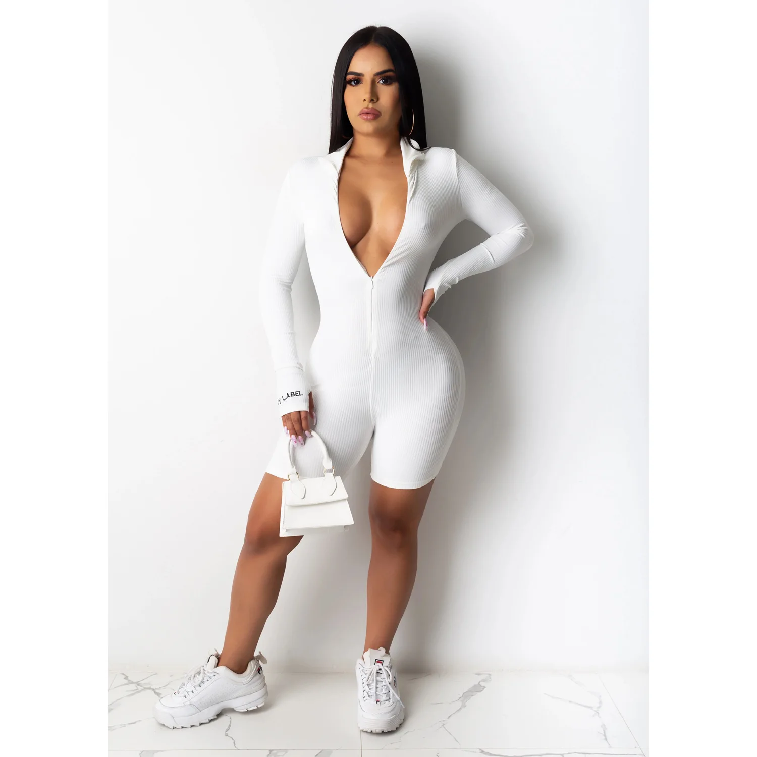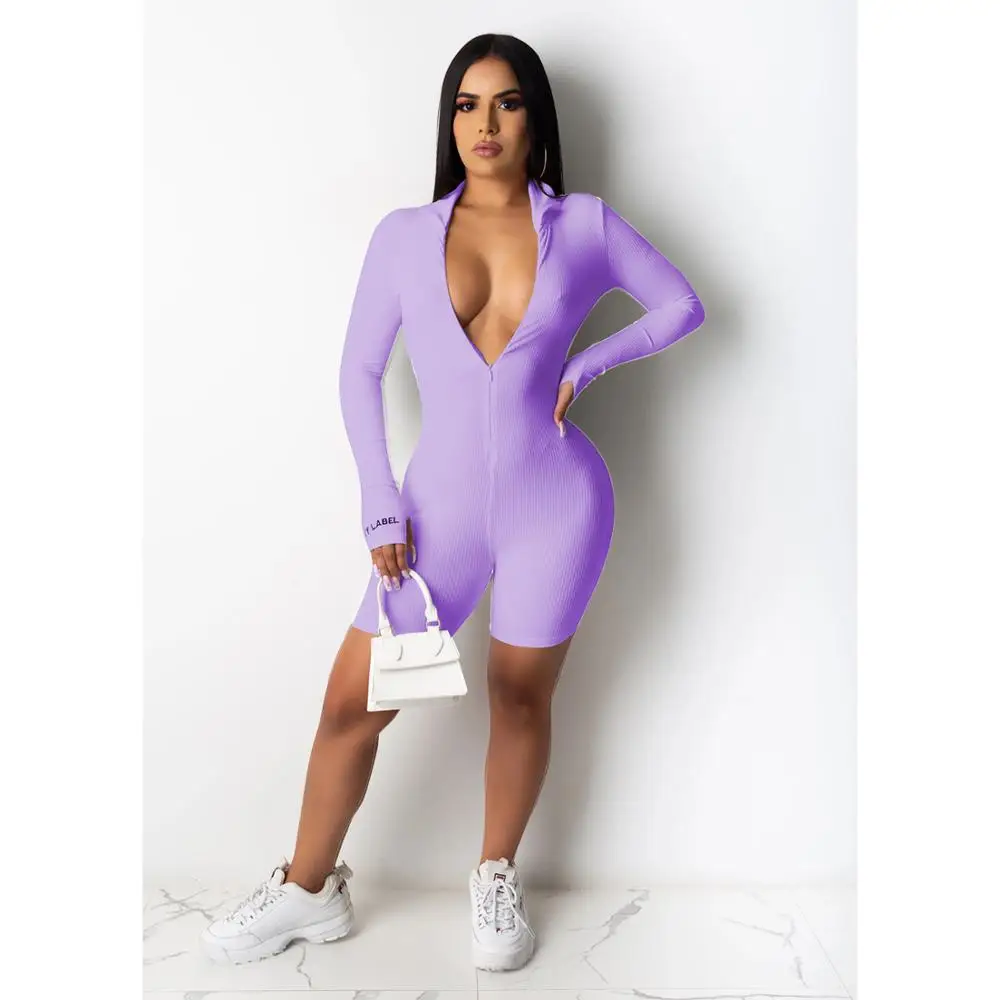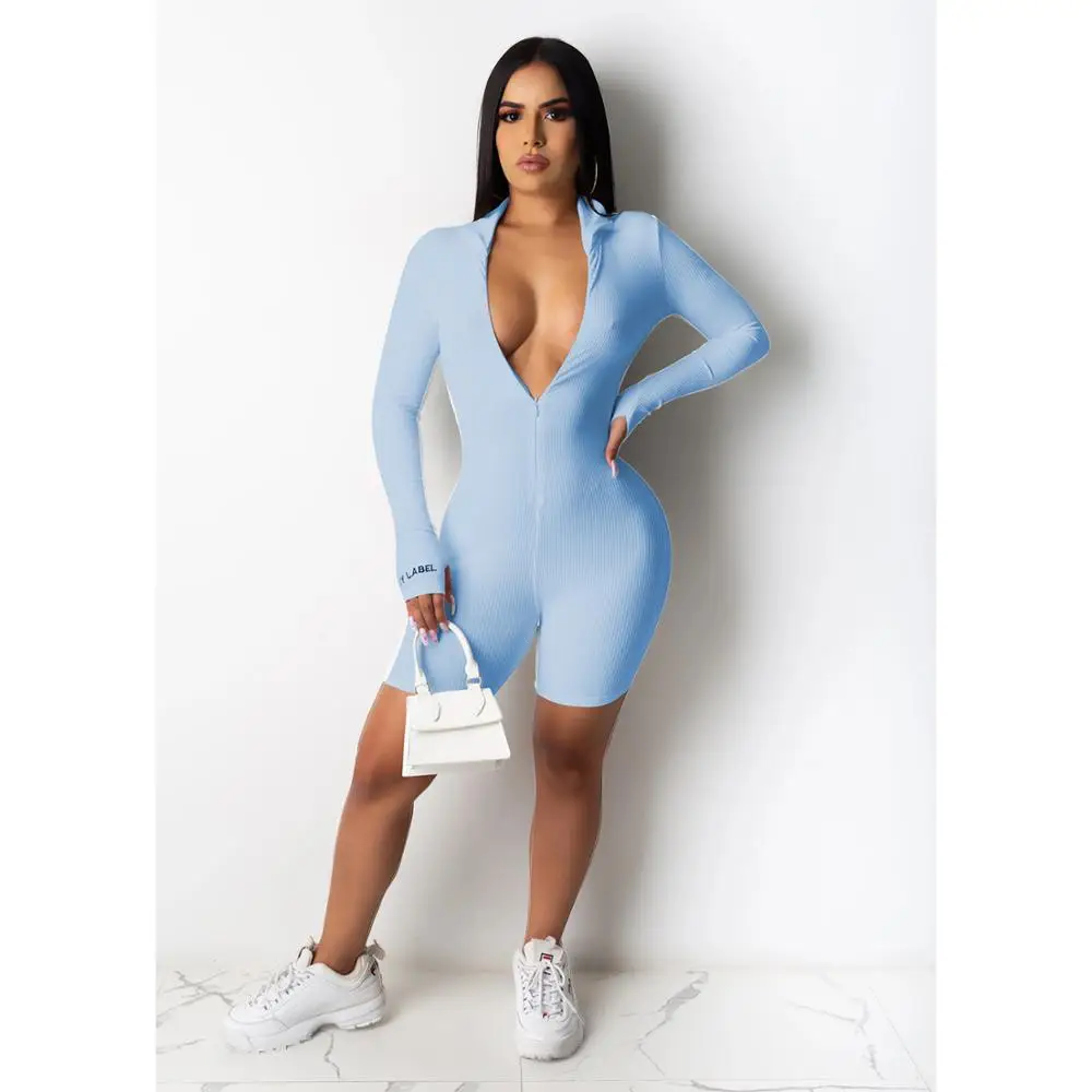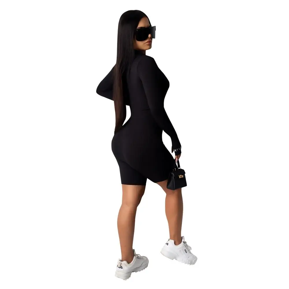 Женский трикотажный комбинезон в рубчик, с длинным рукавом, на молнии