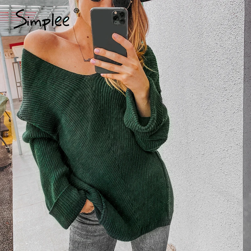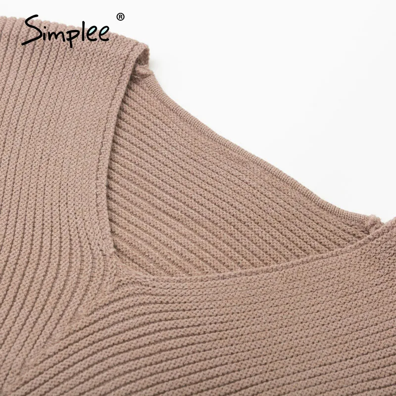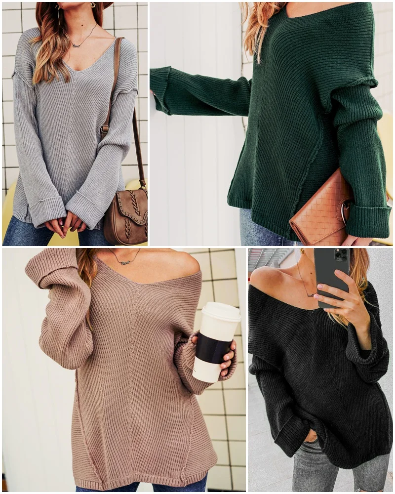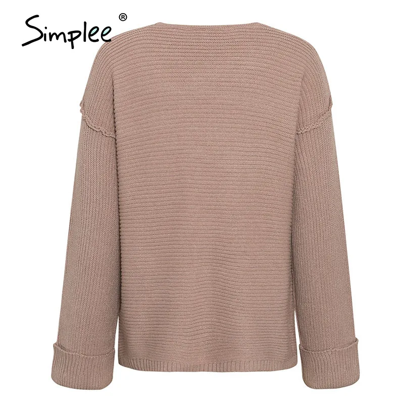 Женский трикотажный свитер с V-образным вырезом и длинным рукавом