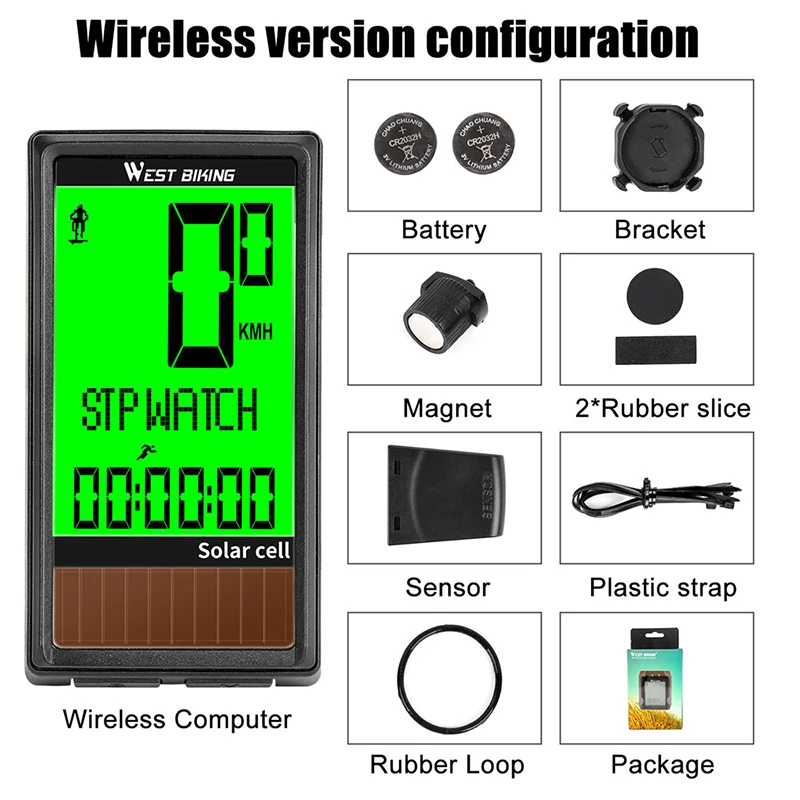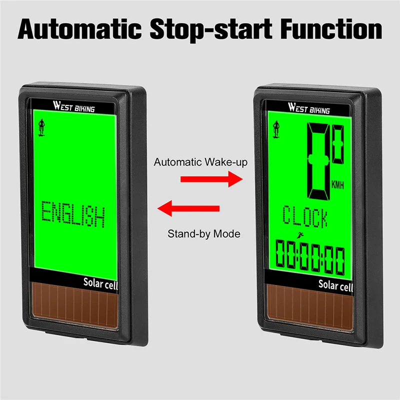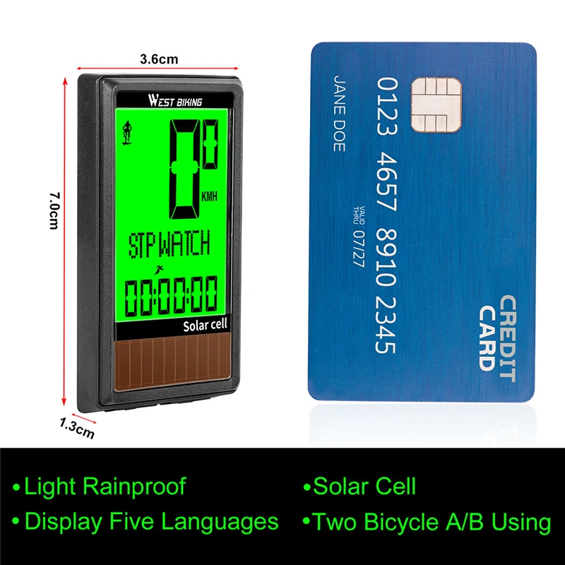 Велокомпьютер WEST BIKING, беспроводной, на солнечной батарее, одометр, спидометр, многофункциональный Секундомер с 5 языками