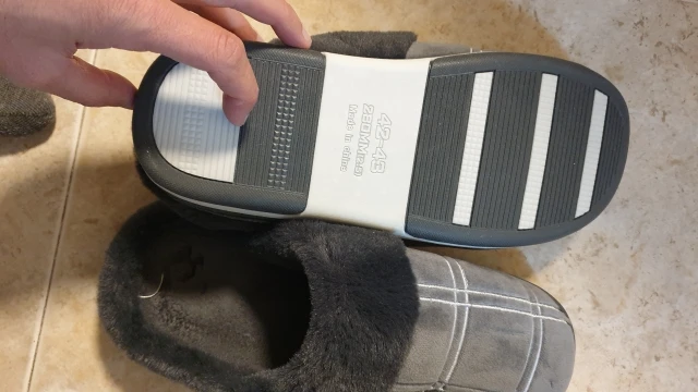 Неплохие тапочки. Плюсы: очень теплые, в них комфортно, ничего не жмёт, приятно ноге на ощупь. Минусы: не дышат, нога немного потеет, немного скользко внутри, если без носков одевать. В целом, не пожалел, что взял.