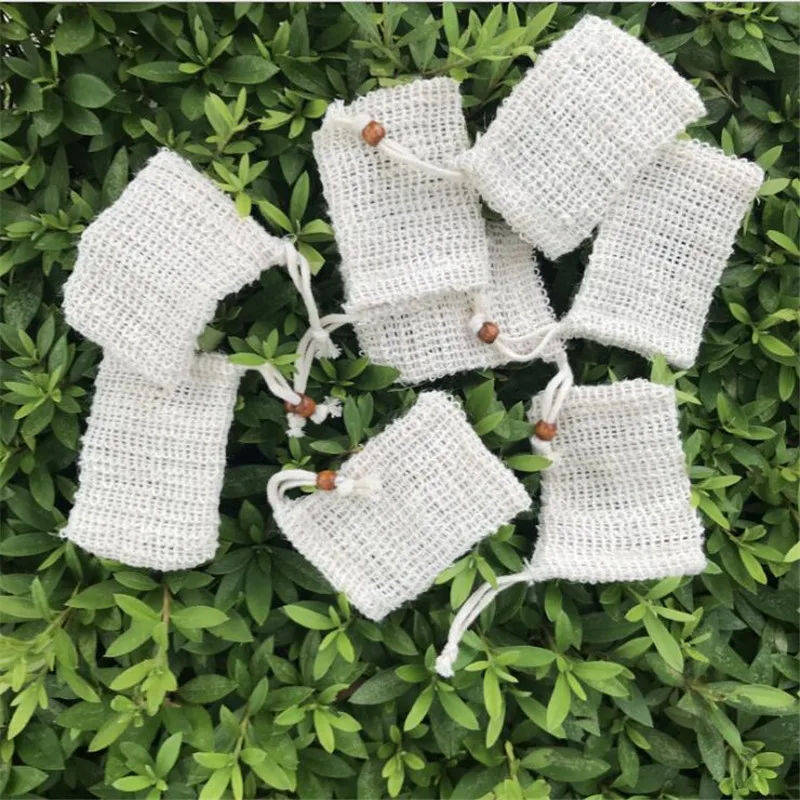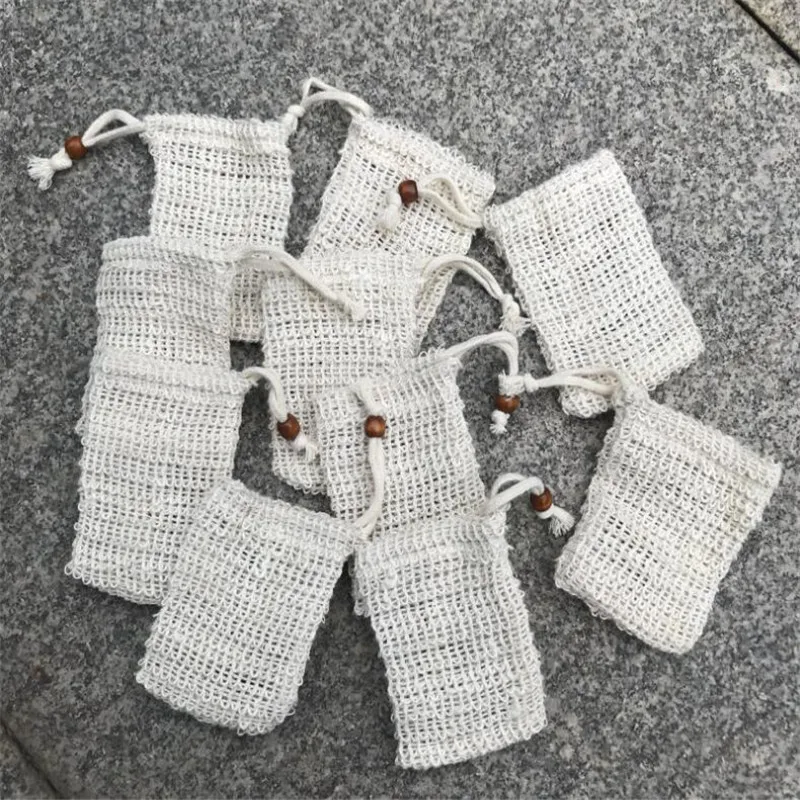 Мешок для мыла из сизаля 9*13 см, устройство для получения пузырьковой пены, двухслойная сетка для мыла, легкая вспениваемая льняная сетка, инструмент для уборки ванной комнаты