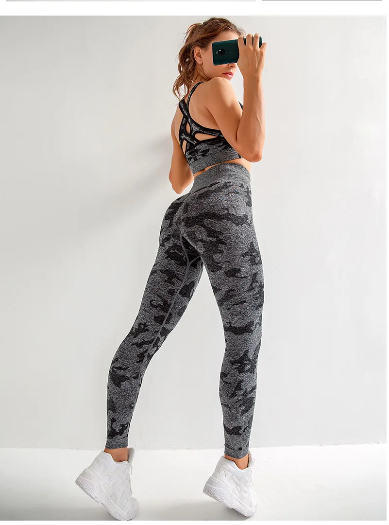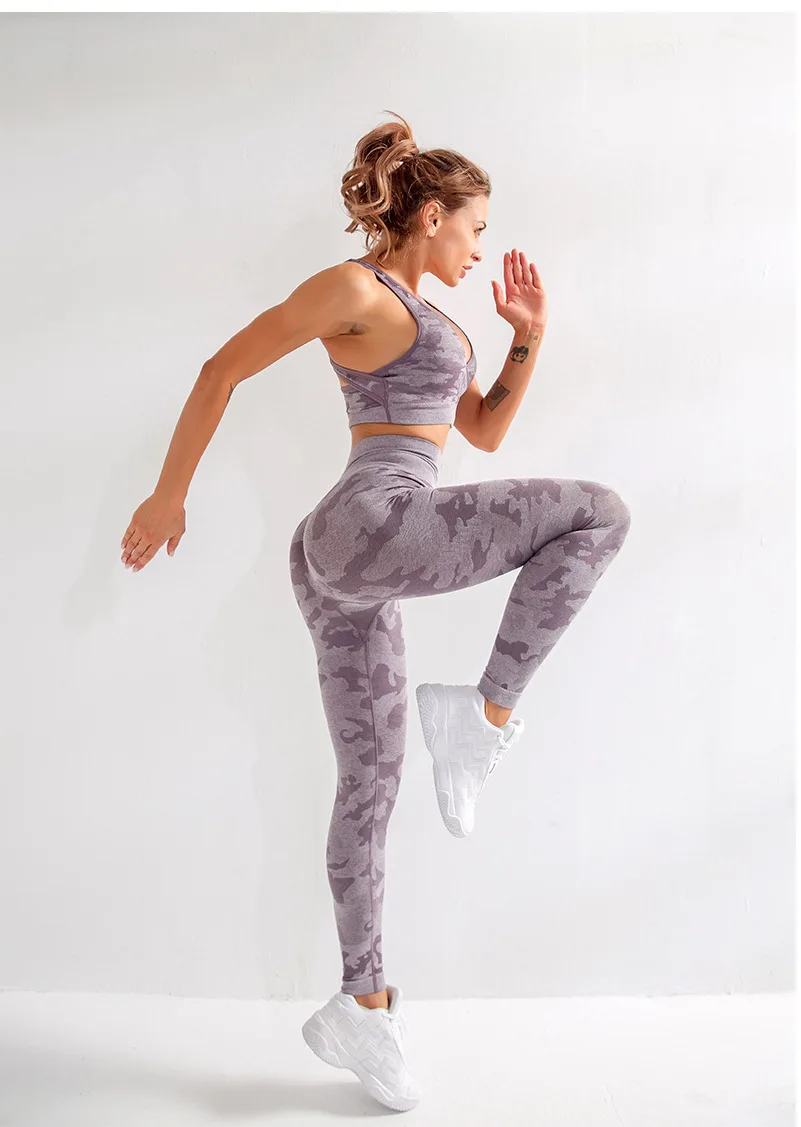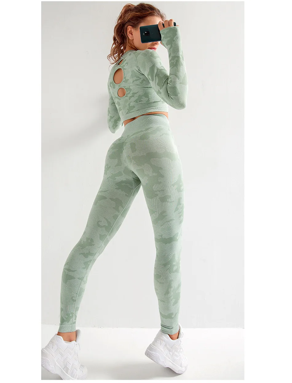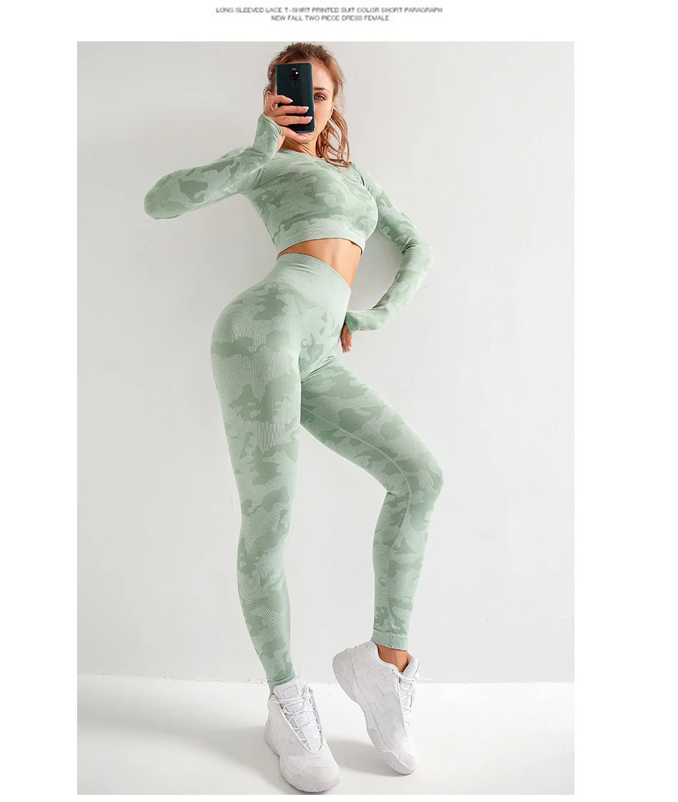 Женский Камуфляжный костюм для йоги, из двух предметов, дышащий спортивный костюм для тренажерного зала, фитнеса, тренировок, бесшовный костюм для йоги