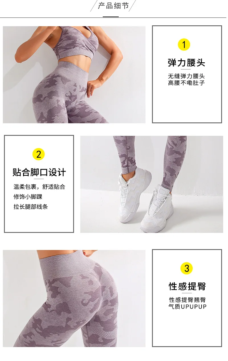 Бесшовный Камуфляжный костюм для фитнеса, Женский высокоэластичный ...