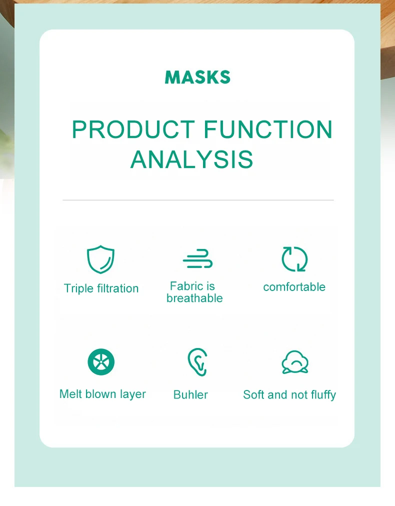 Одноразовая маскаПараметры: 50 шт./пакетРазмеры: 17,5*9,5 см (для взрослых)Срок действия: 2 годаСтруктура продукта: она в основном состоит из маски, Фильтрующей мембраны, маски пояса и носа моста полосы.Примечание: Из-за проблем с освещением при фотографировании изделие будет иметь небольшую разницу в цвете, пожалуйста, обратитесь к фактическому полученному товару.Особенности продукта:1. Невидимый Корректируемый зажим для носа, подходит для моста носа, предотвращает запотевание очков.2. Прочные эластичные пластиковые ушки, очень удобные для длительного использования3. Трехмерная сетчатая фильтрующая структура, высокая плотность для блокирования пыли Пожалуйста, обратите внимание, что указанный Товар производится и распространен за рубежом и в соответствии с законодательством страны его происхождения.