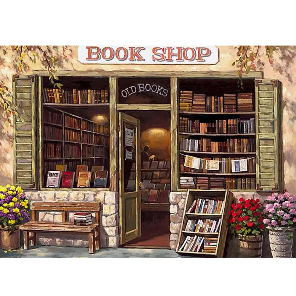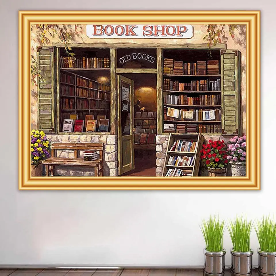 Алмазная живопись 5D "Книжный магазин", вышивка крестиком, Алмазная мозаика, картина для стразы, подарок