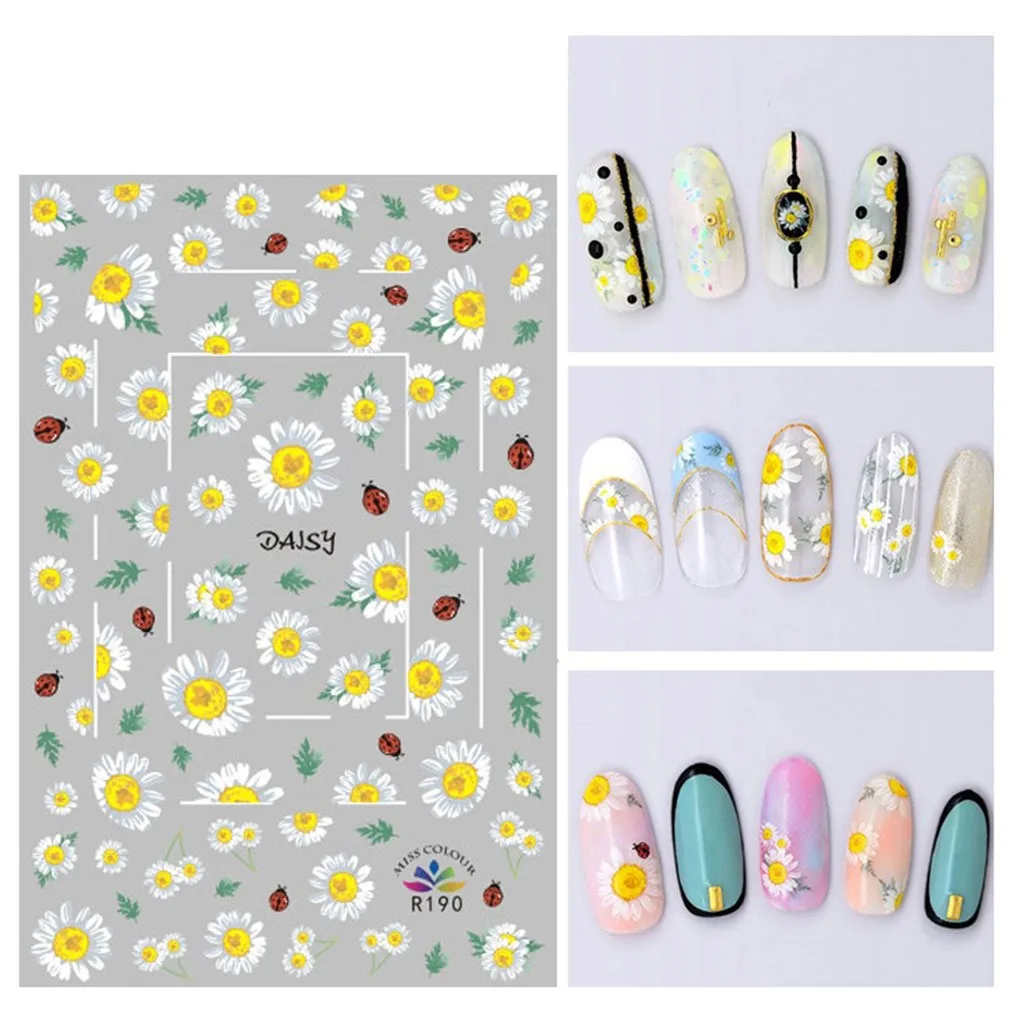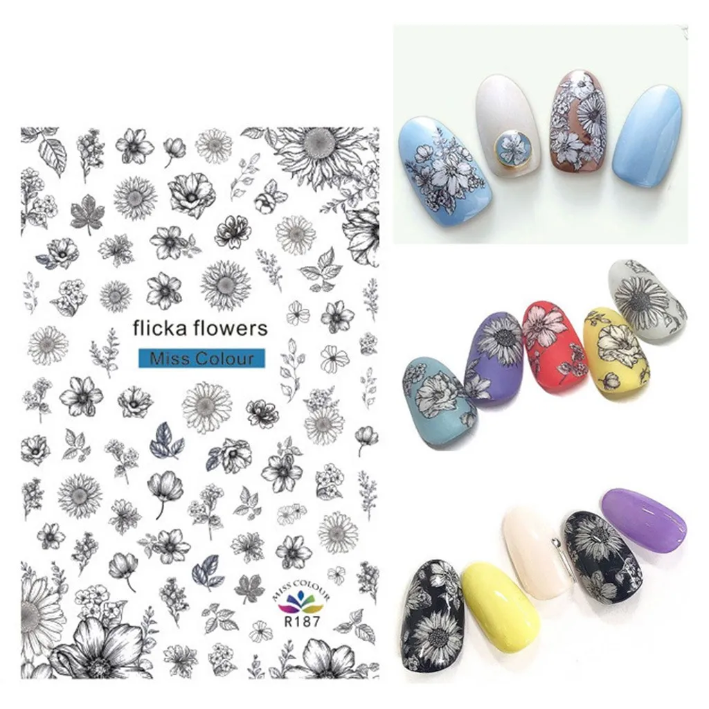 Ультратонкая наклейка для ногтей с клейкими цветами розы Хризантема и подсолнух