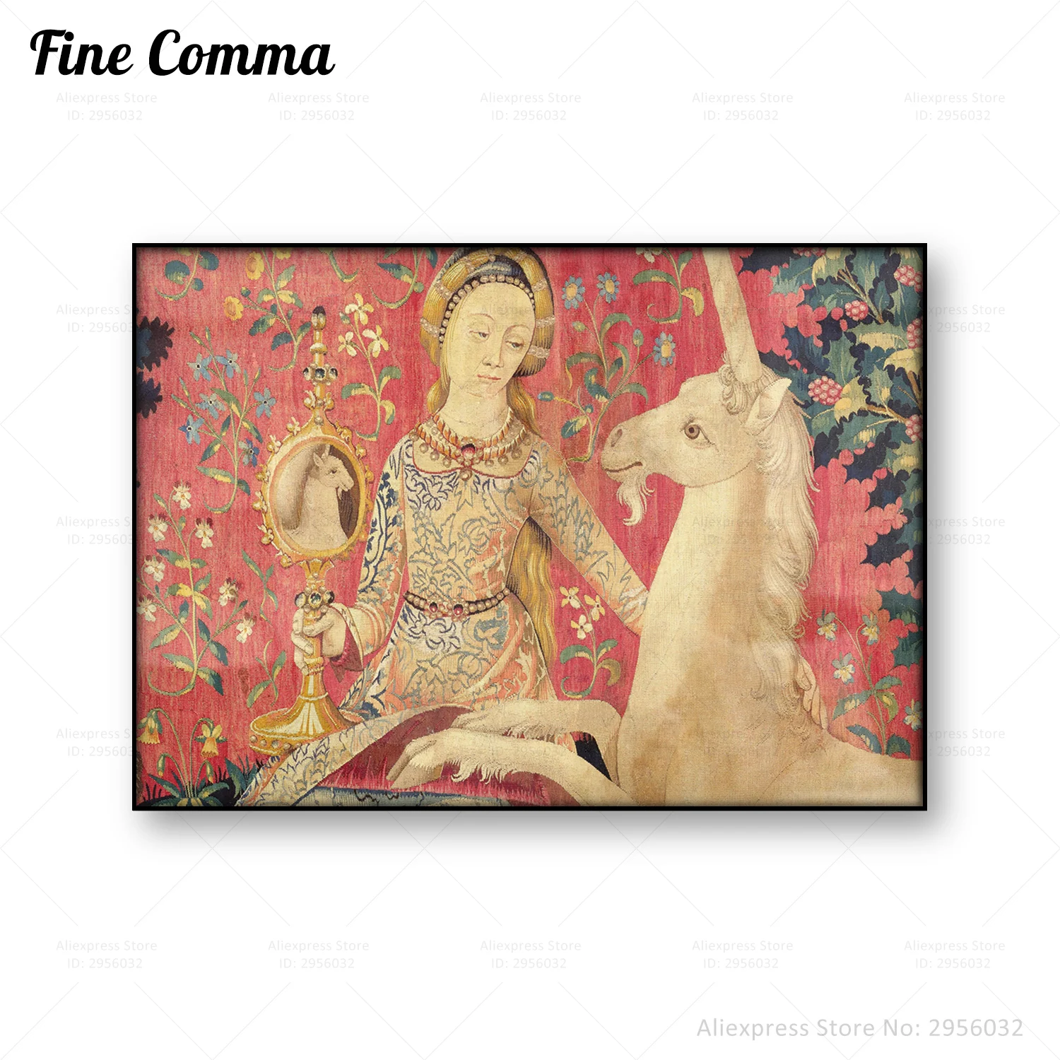 Винтажный постер дама и Единорог, настенное искусство, холст, античный гобелен, художественное украшение для дома, картина, цельный плакат