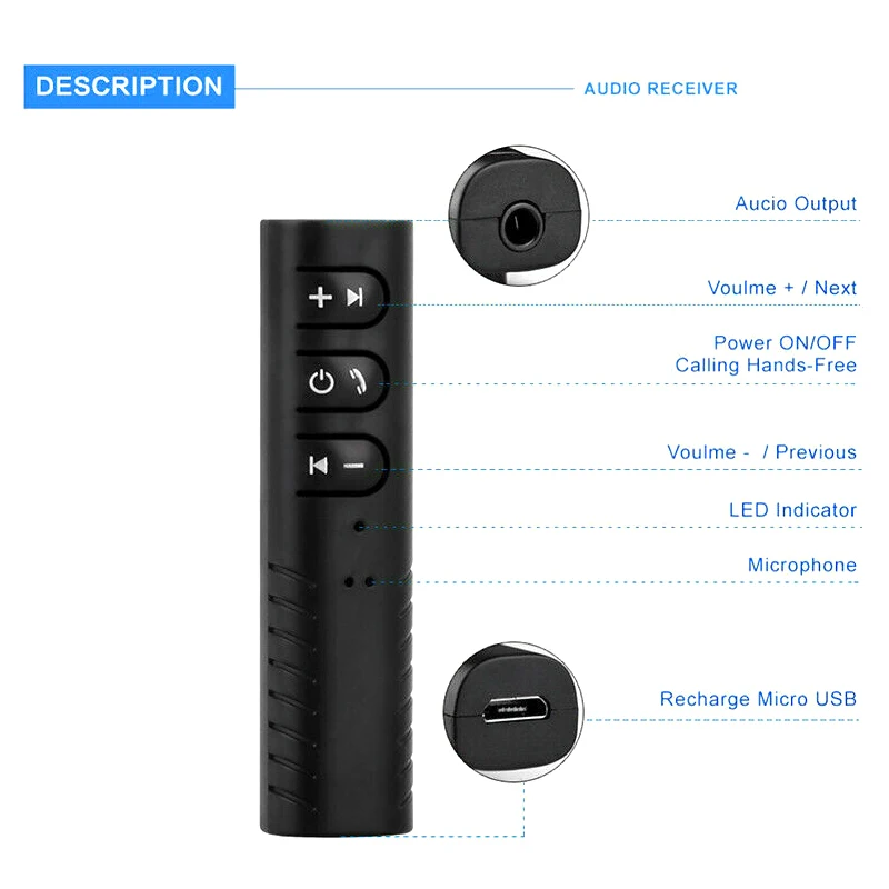Мульти-функциональный приемник: с 3,5 мм выход, он может быть подключен к различные электронные устройства, в том числе компьютера, мобильного телефона, динамик, MP3, автомобильной аудиосистемы и т. д.