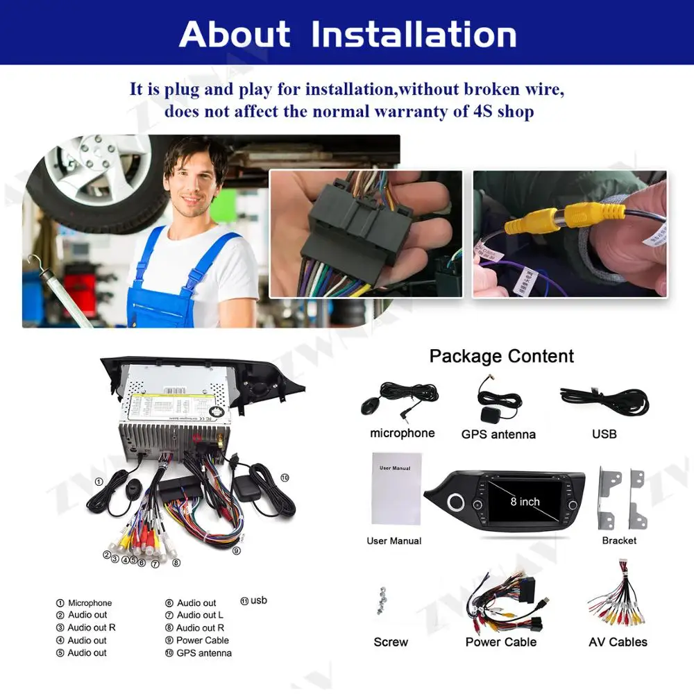 Это plug and play для установки, но мы предлагаем вам найти местного профессионального инженера по установке или автомобиля a & V магазин для установки нашего блока в вашем автомобиле, чтобы избежать возможных повреждений приборной панели и самого головного устройства. Конечно, если вам нужна любая поддержка, вы можете свободно связаться с нами.