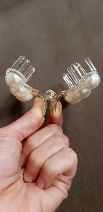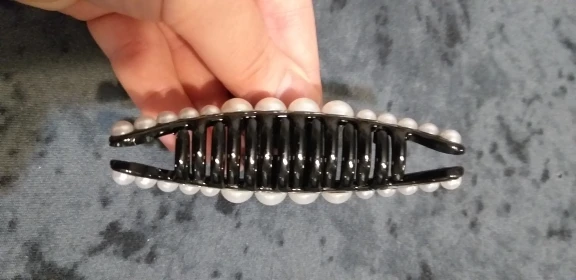 Заколка отличная. Все приклеено ровно. Оправдала все ожидания. Держит пучок волос крепко. Доставка в Украину быстрая. Рекомендую