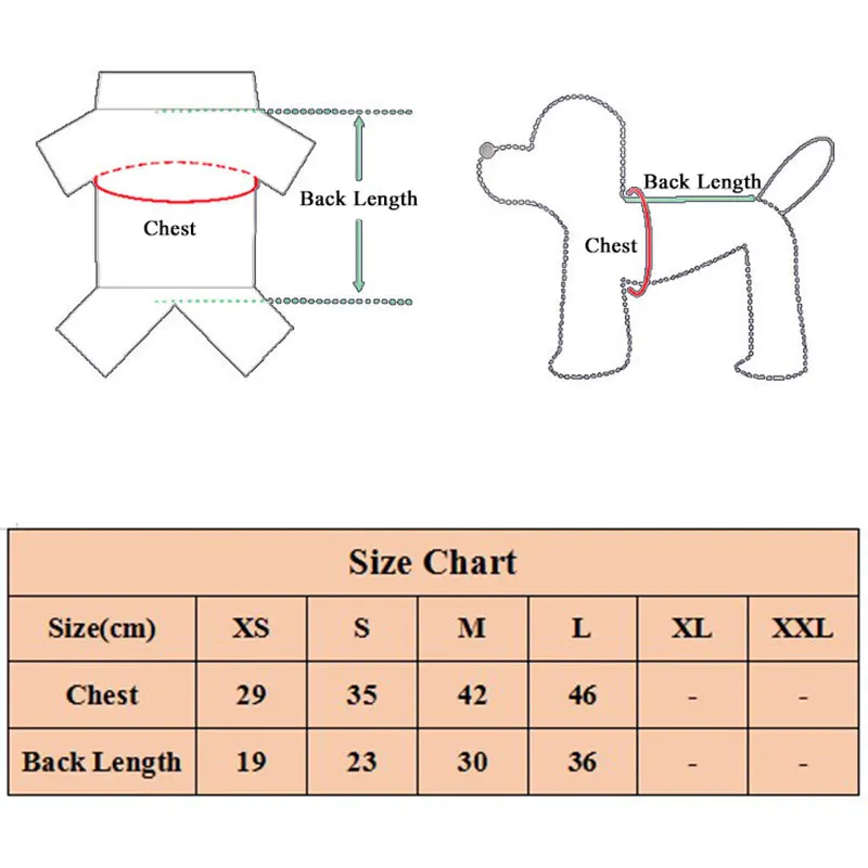 Описание:100% новый и высокое качество.Особенности:Материал: хлопокЦвет: синий, черный, зеленый, серыйРазмер: XS,S,M,L(1 дюйм = 25,4 мм или 1 мм = 0,0393 дюйма)Посылка включает в себя:1 предмет, одежда для домашних животныхОбратите внимание:1. Допускается погрешность в 2-3% из-за ручного измерения.Перед размещением заказа, пожалуйста, внимательно ознакомитесь со всеми условиями.
