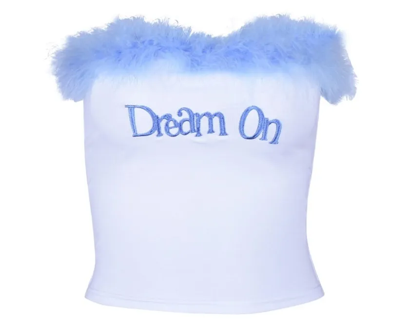 Лидер продаж, Модный женский Топ без бретелек, с меховыми перьями, ...