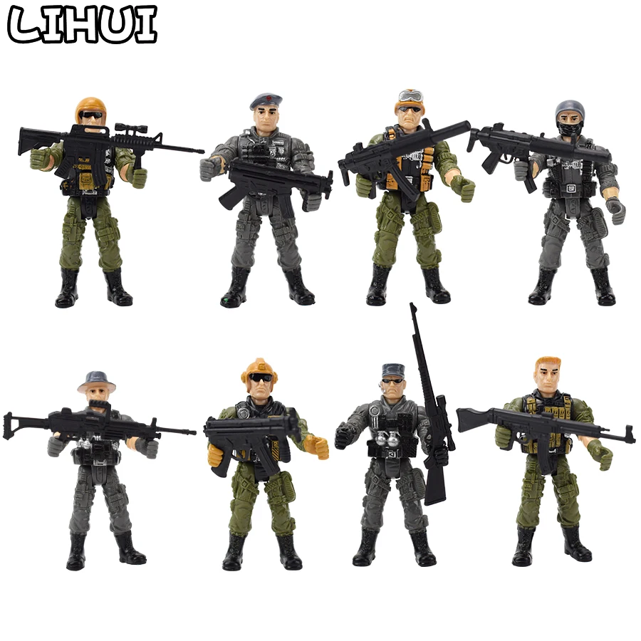 Экшн-фигурки спецназа в стиле милитари, 8 шт.компл., игрушки для мальчиков, боевая игра, подвижные шарниры, Военные солдаты, модель игрушки для детей, подарок