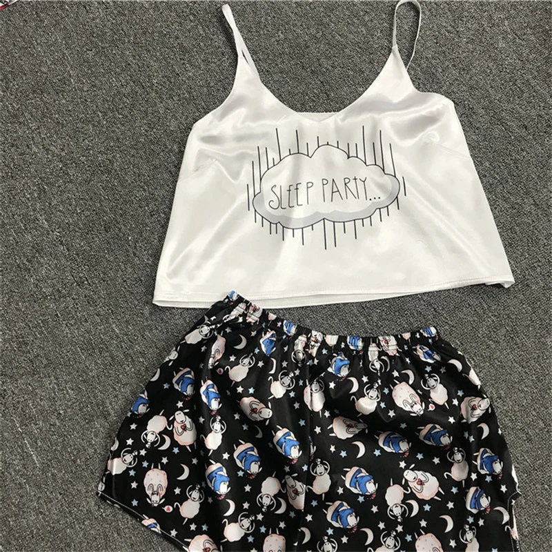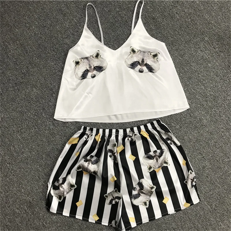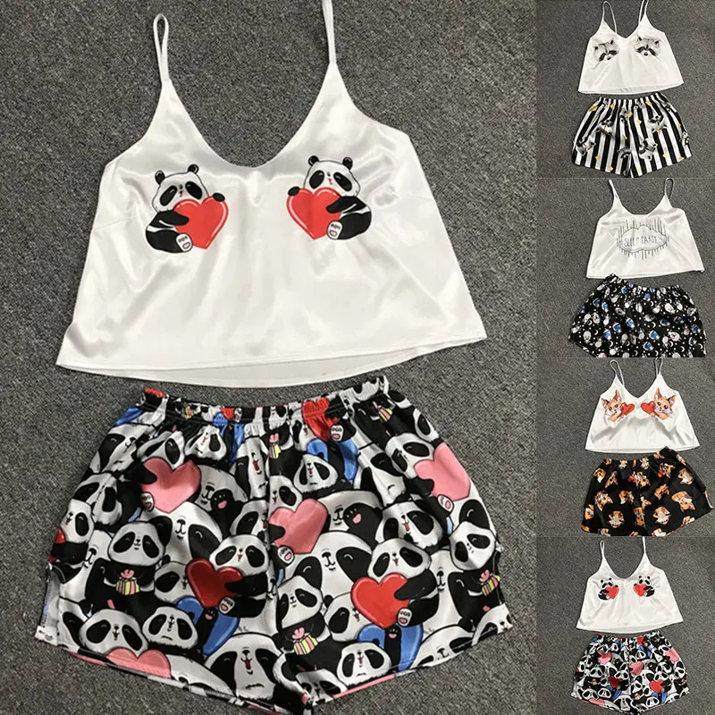 Пижама, сексуальный короткий топ, майка, шорты, сексуальная одежда для сна с рисунком панды, енота, женские летние шорты, Милая Ночная одежда, майка без рукавов