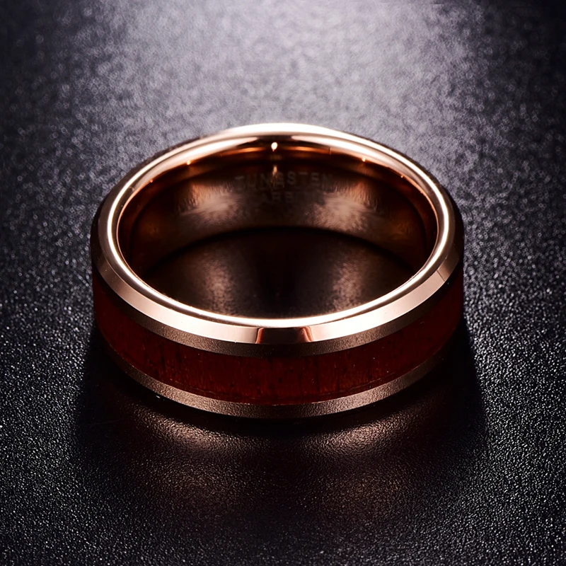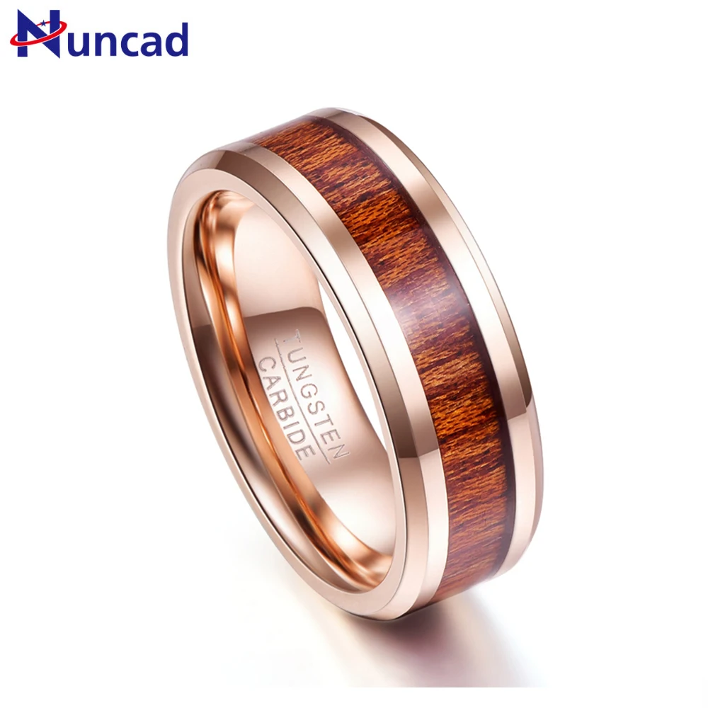 Кольцо NUNCAD 8 мм из карбида вольфрама, гавайская КоА, дерево инкрустация вольфрамового кольца, вольфрамовое кольцо, обручальное кольцо со скошенными краями, мужское кольцо, удобный размер 7-12