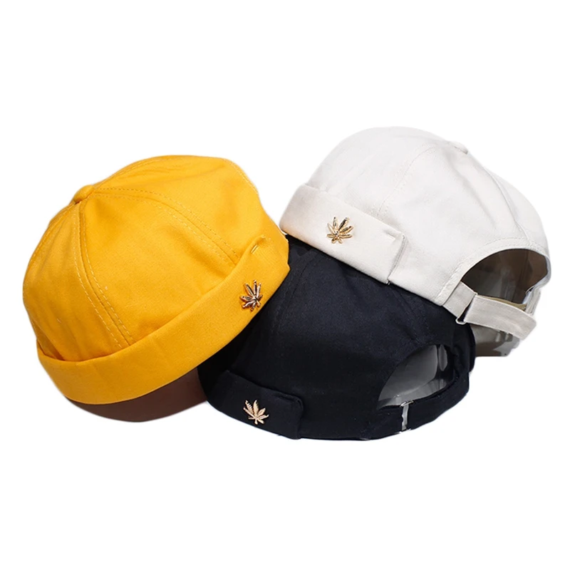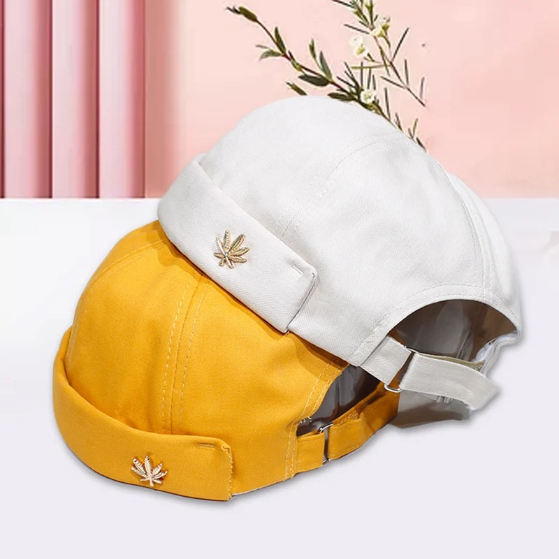 Кепка с вышивкой в виде листьев и черепа для мужчин и женщин, теплая Панама с закатанными манжетами, однотонная Регулируемая шапка без козырька