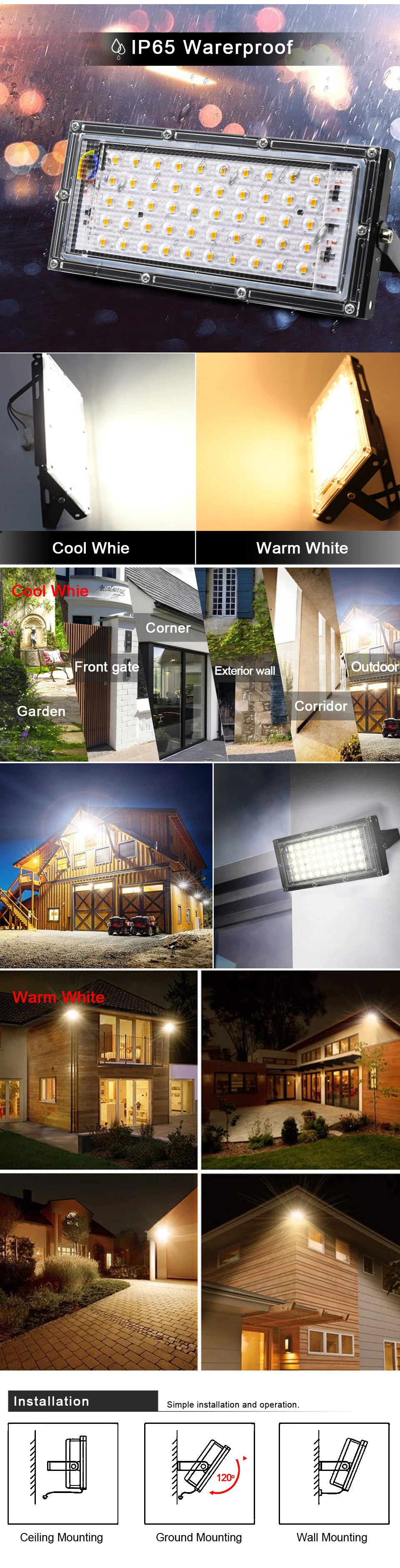 2 шт.лот 50 Вт Светодиодный прожектор Наружное освещение 220 В IP65 водонепроницаемый уличный фонарь прожектор Светодиодный отражатель прожектор