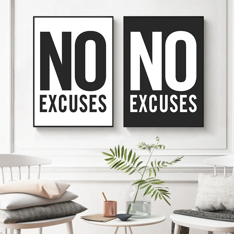 Картина на холсте, черно-белая, с надписью Вдохновляющие Слова, без отговоров, для офиса, домашнего декора, YX196
