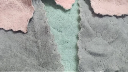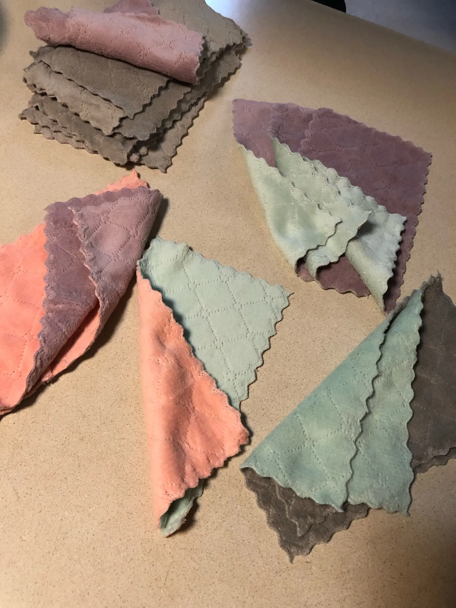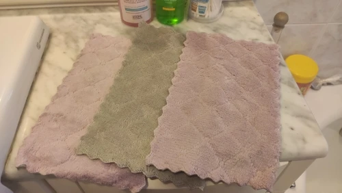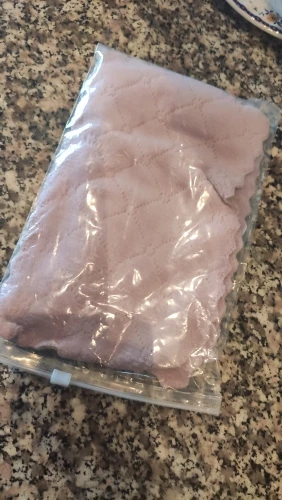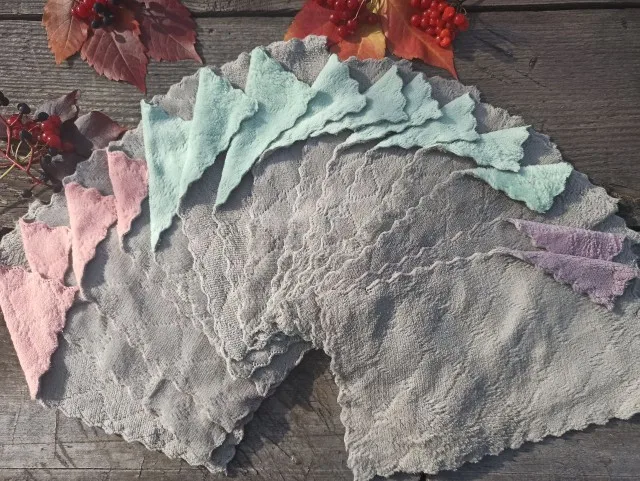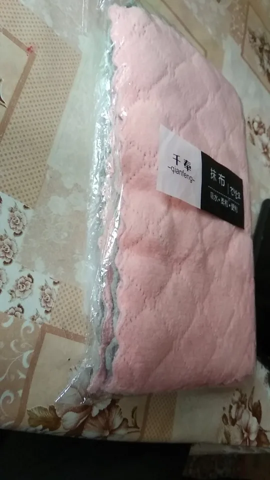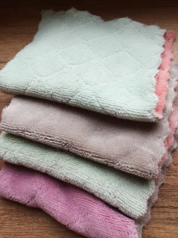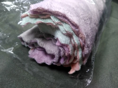 Получила 3 маленькие тряпочки. Очень приятные на ощупь и удобные. Цвет немного отличается от картинки, но мне понравился. С одной стороны серые, а с другой розовые.
