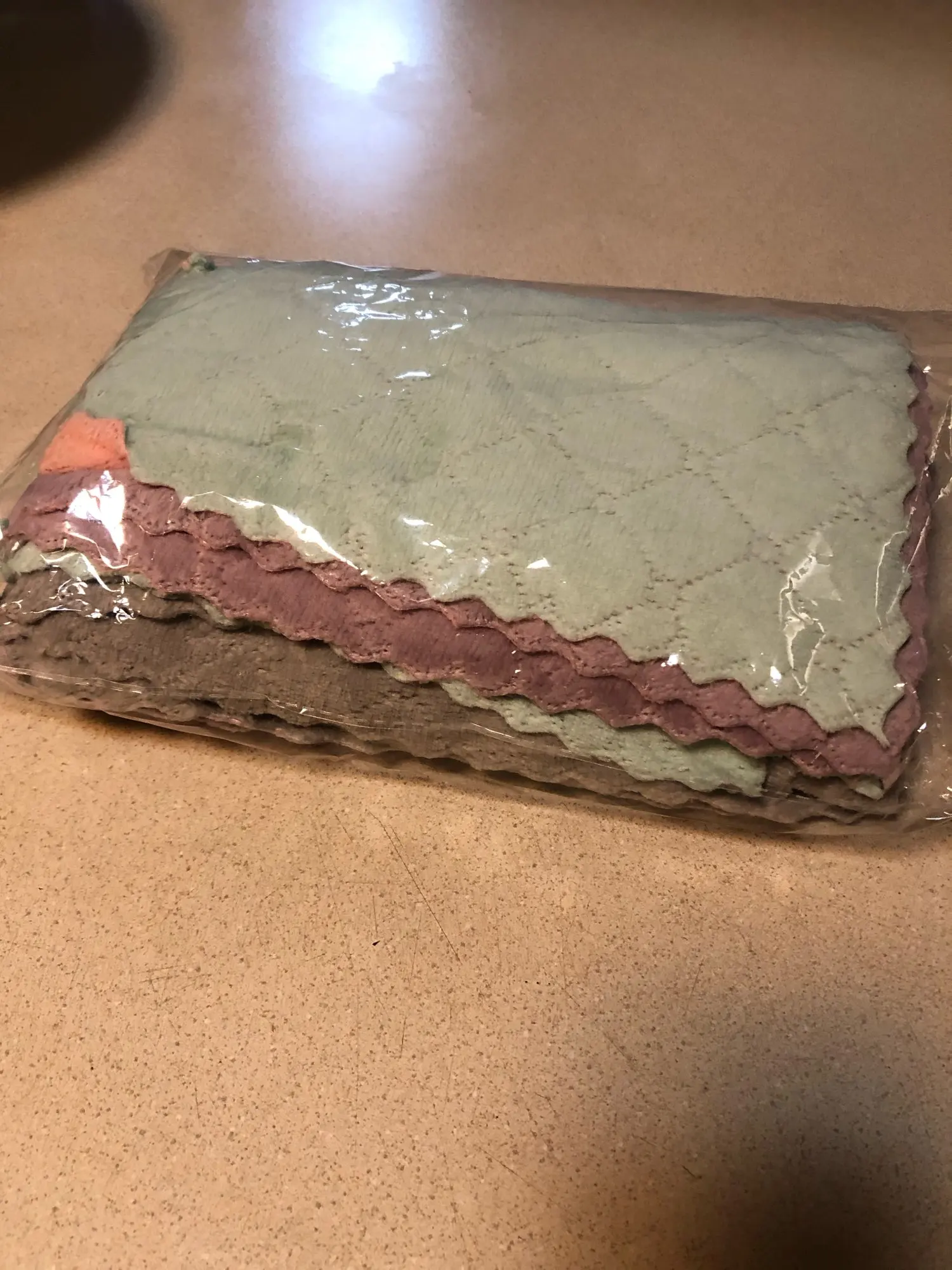 Тряпочки отличные. 10 штук в комплекте, по 2 разных расцветок. Мягенькие, толстые. Воду впитывают хорошо. Взяла вытирать стол и вокруг раковины. Свои функции выполняют. Магазин наледный, отправили по акционной цене, пришло без задержек. Спасибо!