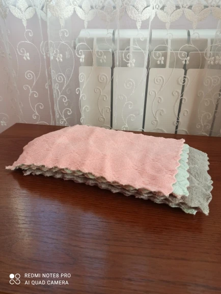 Замечательные тряпочки, очень нравятся, небольшой размер, двусторонние, без запаха, края обработаны, мягкие, приятные на ощупь, удобные, хорошо впитывают воду, купила 20 штук за 329 руб, разные цвета (12+5+3), доставка до Питера месяц. Спасибо продавцу.