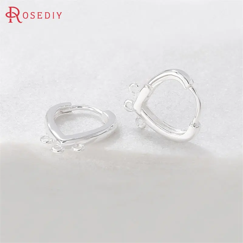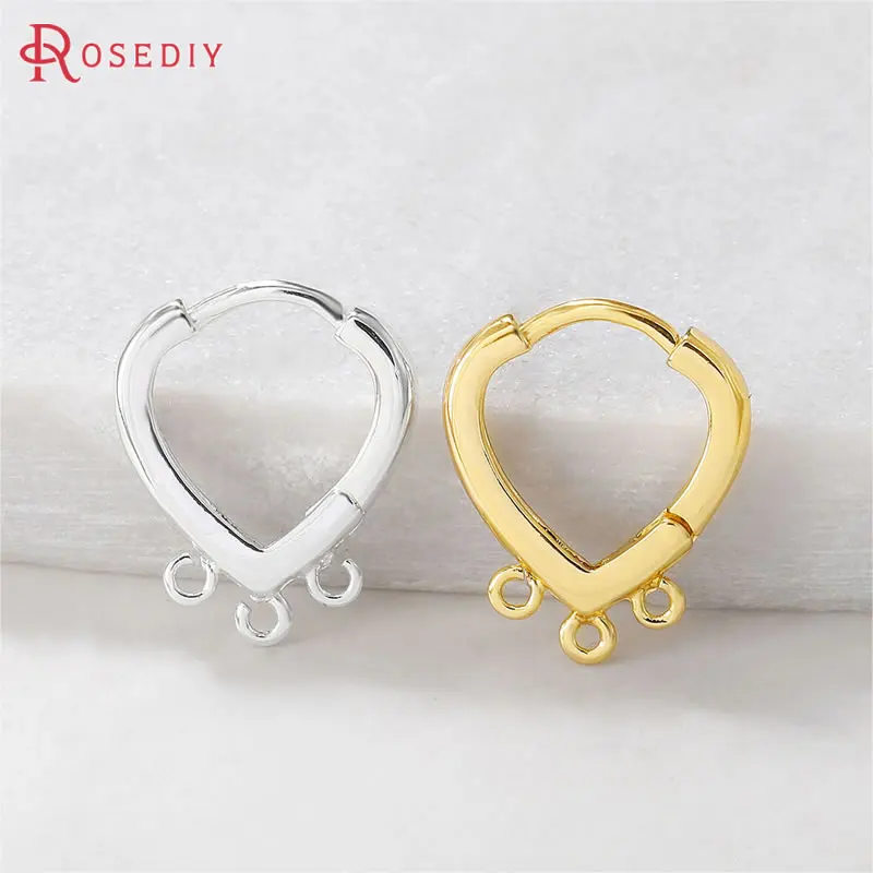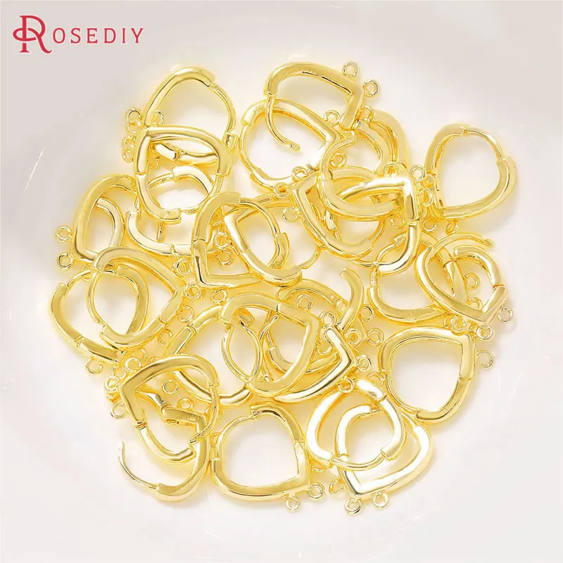 (39170)6 шт., латунные серьги-петли в форме сердца, 15x17 мм, 24 К, золотого цвета, с 3 отверстиями для подвешивания, принадлежности для изготовления ювелирных изделий, аксессуары для рукоделия
