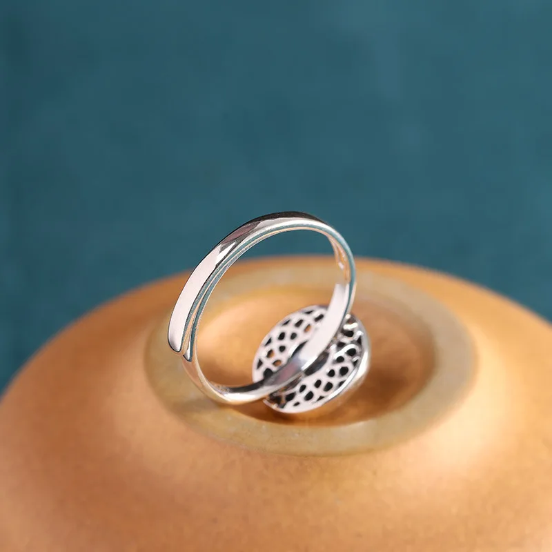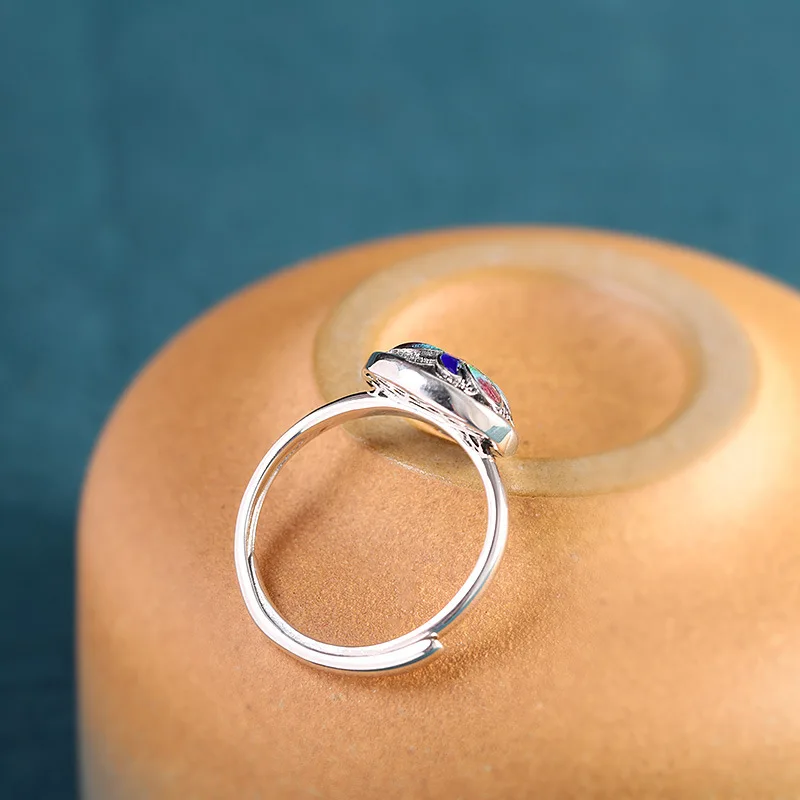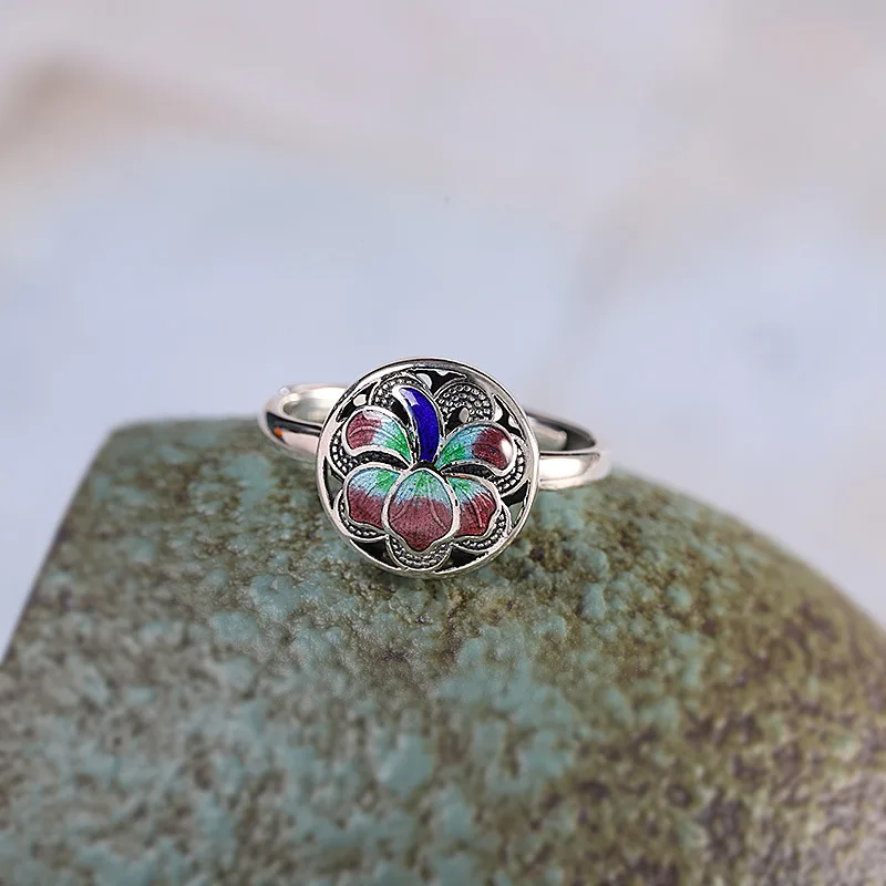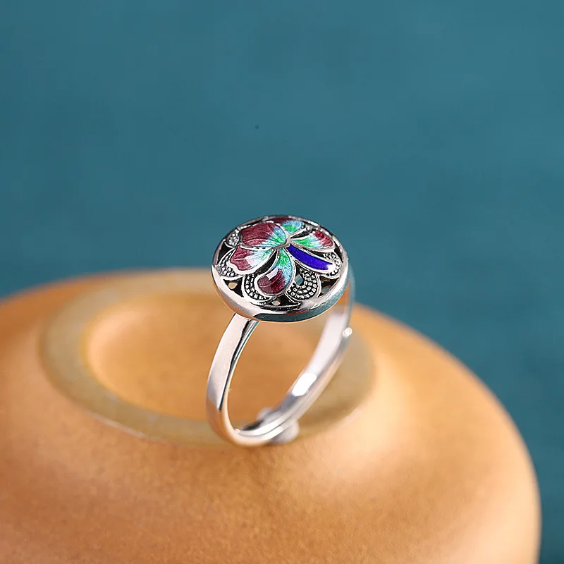 Женские эмалевые кольца с лотосом, в этническом стиле, в стиле ретро, с эмалью, с открытым кольцом, из настоящего серебра, ювелирное изделие в китайском стиле