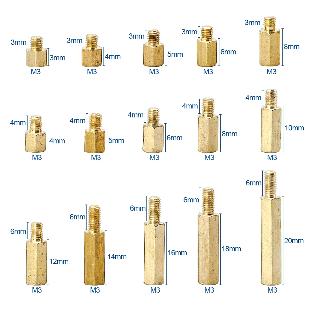 300 шт.компл. M3 штекер-гнездо Шестигранная латунная прокладка в ассортименте Шестигранная Золотая стойка pcb