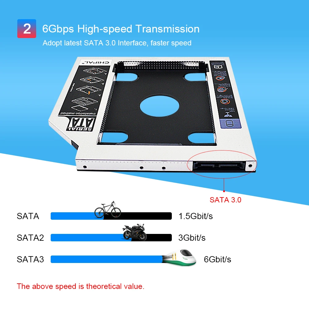 Карман CHIPAL 2020 для универсального жесткого диска, алюминиевый пластик 9,512,7 мм SATA 3,0 2,5 ", адаптер для DVD HDD, жесткий бокс для CD Optibay