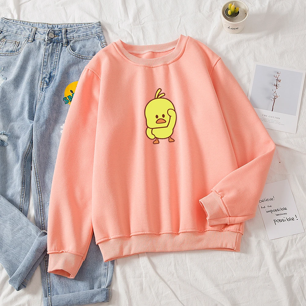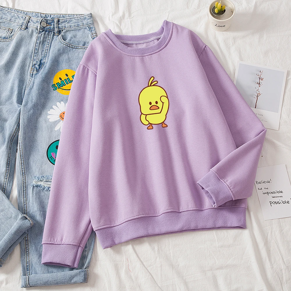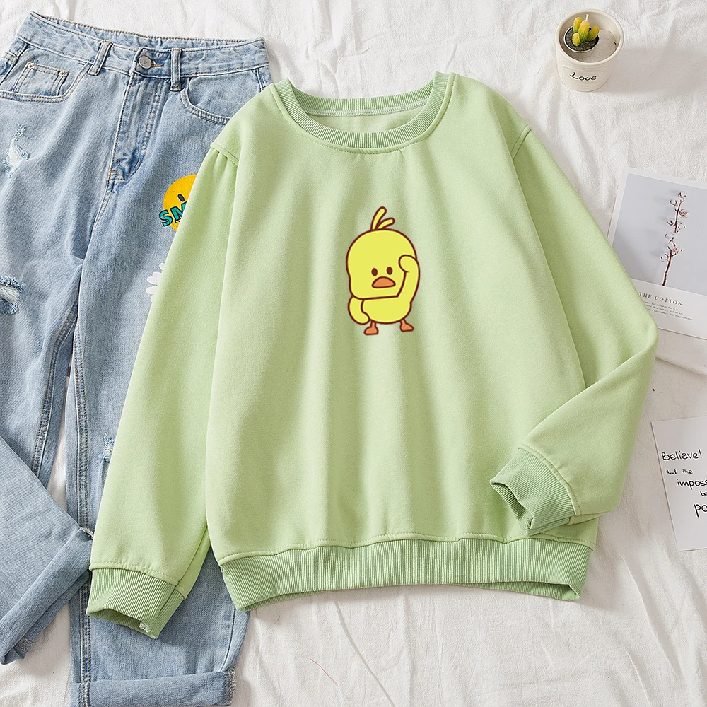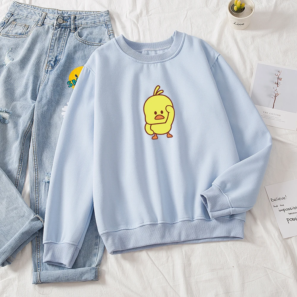 Милые толстовки в стиле Харадзюку, свитшот с круглым вырезом, женские модные толстовки оверсайз с маленьким желтым утенком, забавные Теплые Топы, уличная одежда