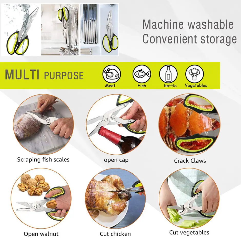 Ножницы кухонные 6 в 1, 2cr13, изогнутые, многофункциональные, для куриных костей