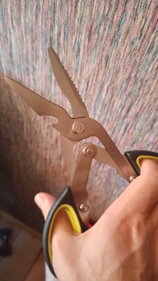 Ножницы действительно супер. За счёт шарнирного механизма усилие на ножах выше, чем у обычных ножниц. Сделаны очень качественно. Пока всё нравится.