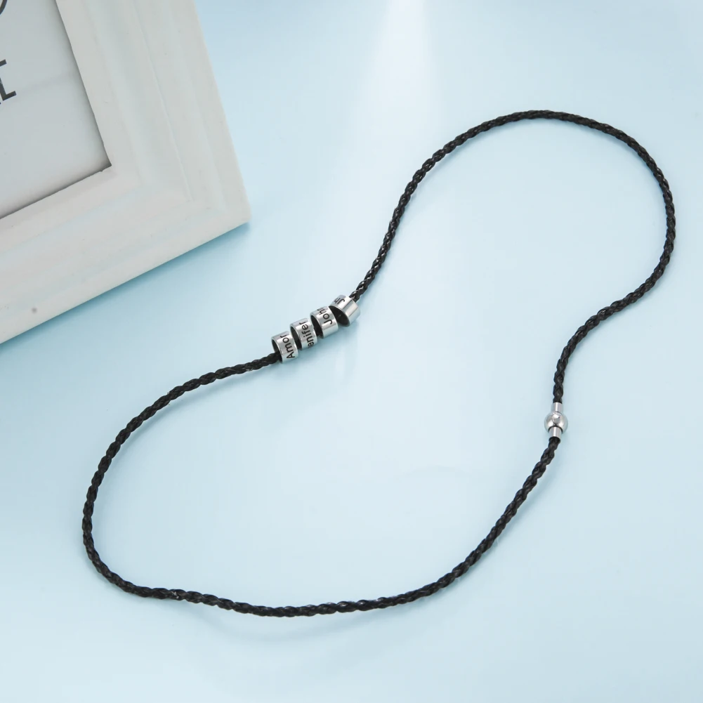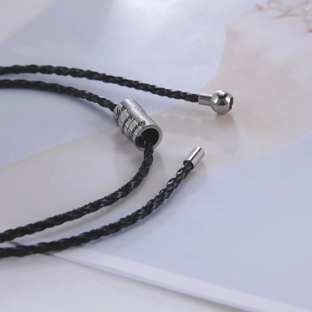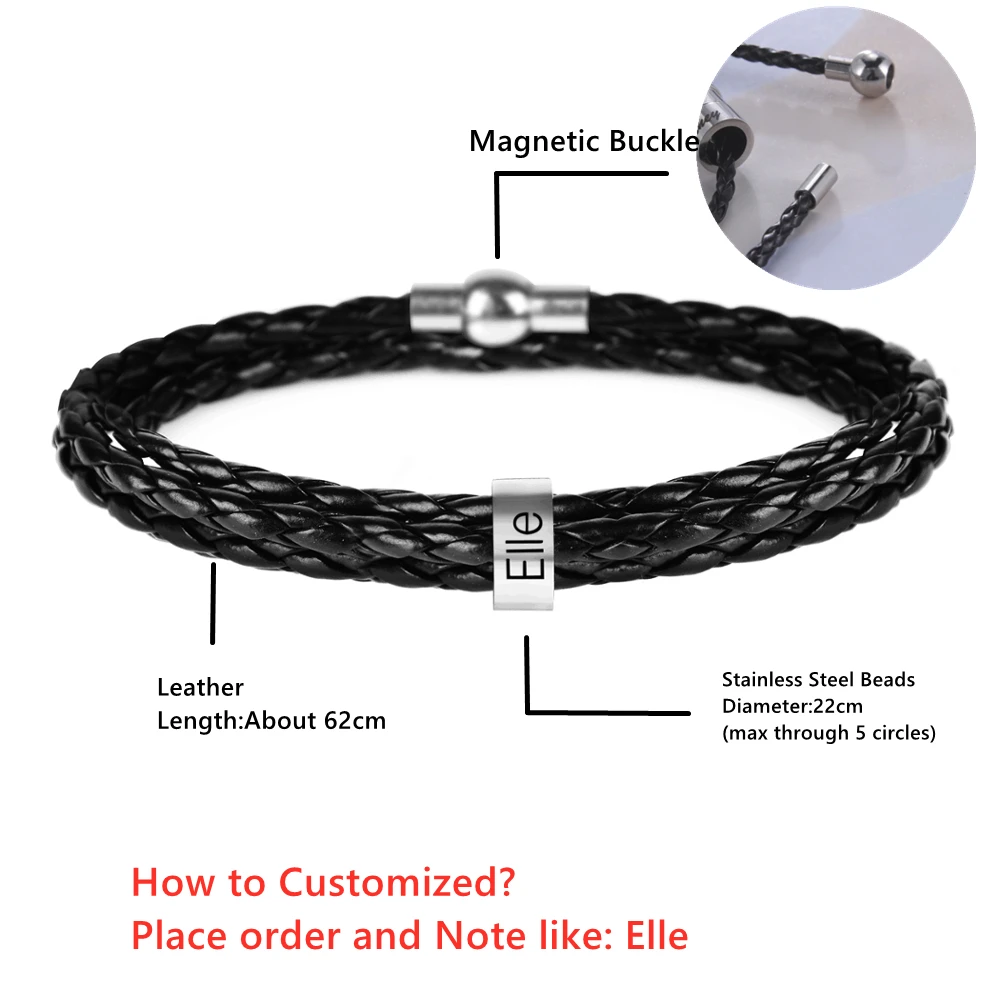 Браслет LIKGREAT с надписью индивидуальный кожаный для женщин и мужчин, браслет из нержавеющей стали с бусинами и плетеным ремешком, браслеты на запястье, персонализированные