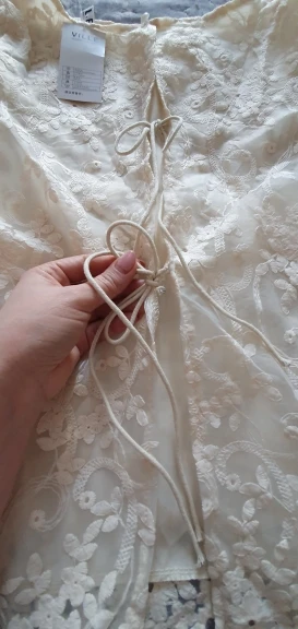 ниточки кое-где висят,но не критично.Завязочки критично.Завязочки сзади пришить не друг напротив друга, нужно перешивать.
