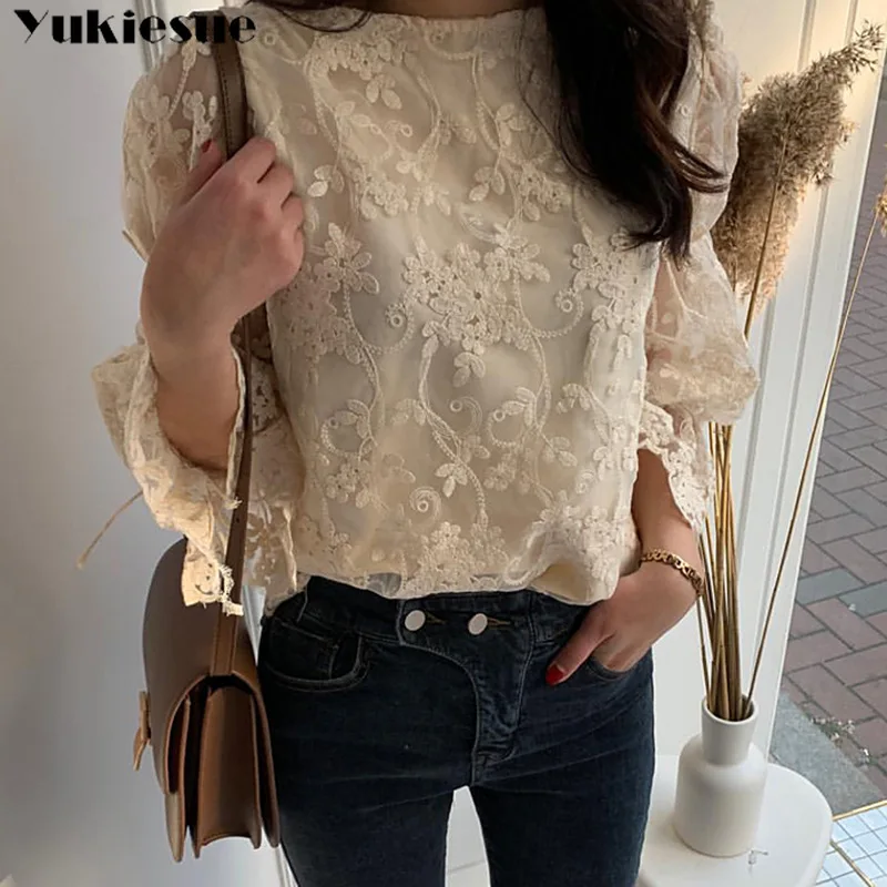 Женская шифоновая рубашка, с вышивкой и Расклешенным рукавом, весна-осень