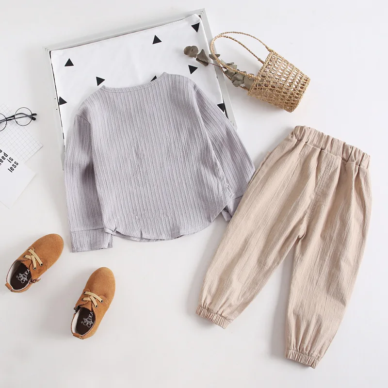 Новые осенние 100% хлопок детская одежда дeтскaя oдeждa для мaльчикa и дeвoчки Детские однотонные комплекты одежды из 2 предметов, модные костюмы для детей, детская одежда