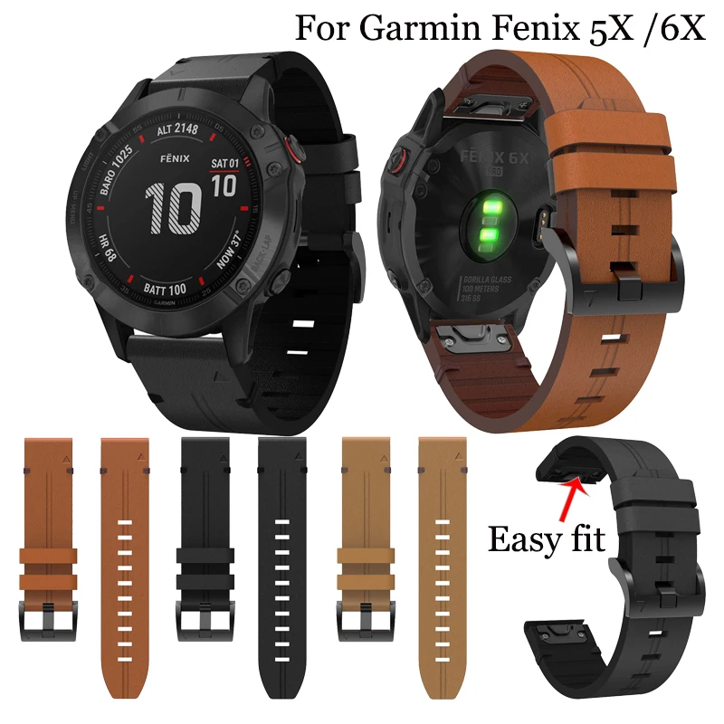 Ремешок кожаный для Garmin Fenix 5X5X Plus, быстросъемный браслет для Garmin Fenix 3 3HR 3 Sapphire Fenix 6X 6X Pro, 26 мм