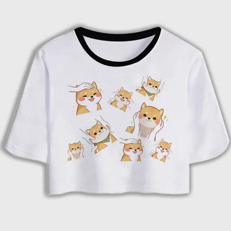 Футболка женская с японским принтом Шиба-ину, милая повседневная короткая футболка с мультяшным рисунком, модный кроп-топ, лето 2020