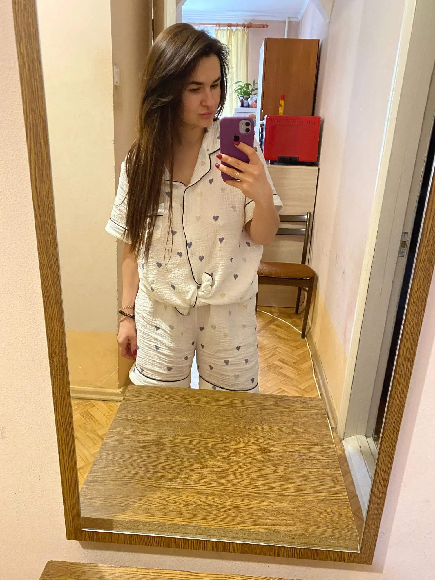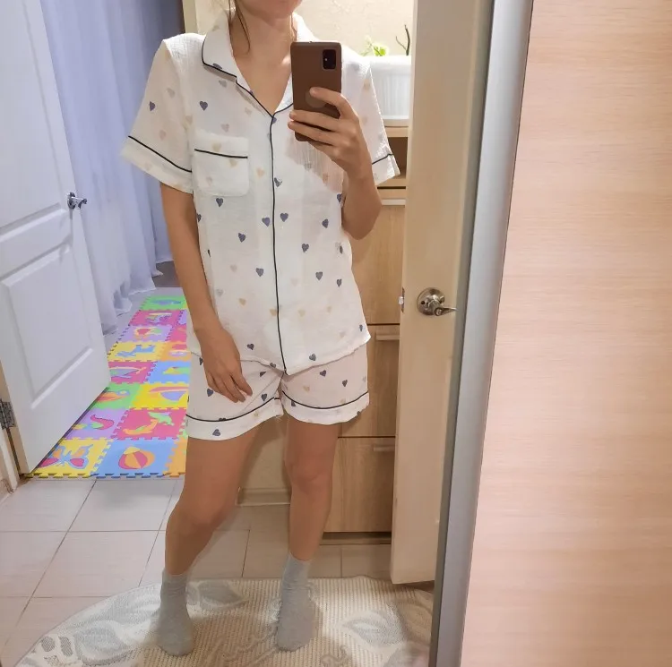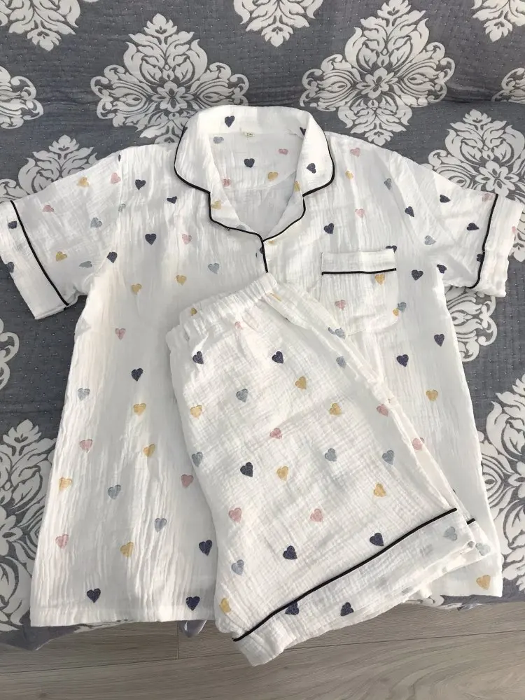 Пижама женская, из хлопка и газовой ткани, с коротким рукавом, в форме сердца