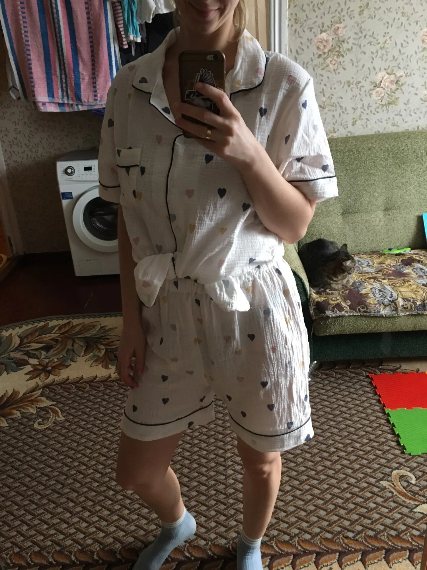 Пижама безумно красивая, мягкая, удобная. Короче лучшая из всех, что я брала. Пришла за 3 недели примерно, на рост 173, вес 60кг, взяла L. Свободно и резинка что нужно на шортах. Именно так, как я хотела. Короче советую и возьму обязательно ещё!